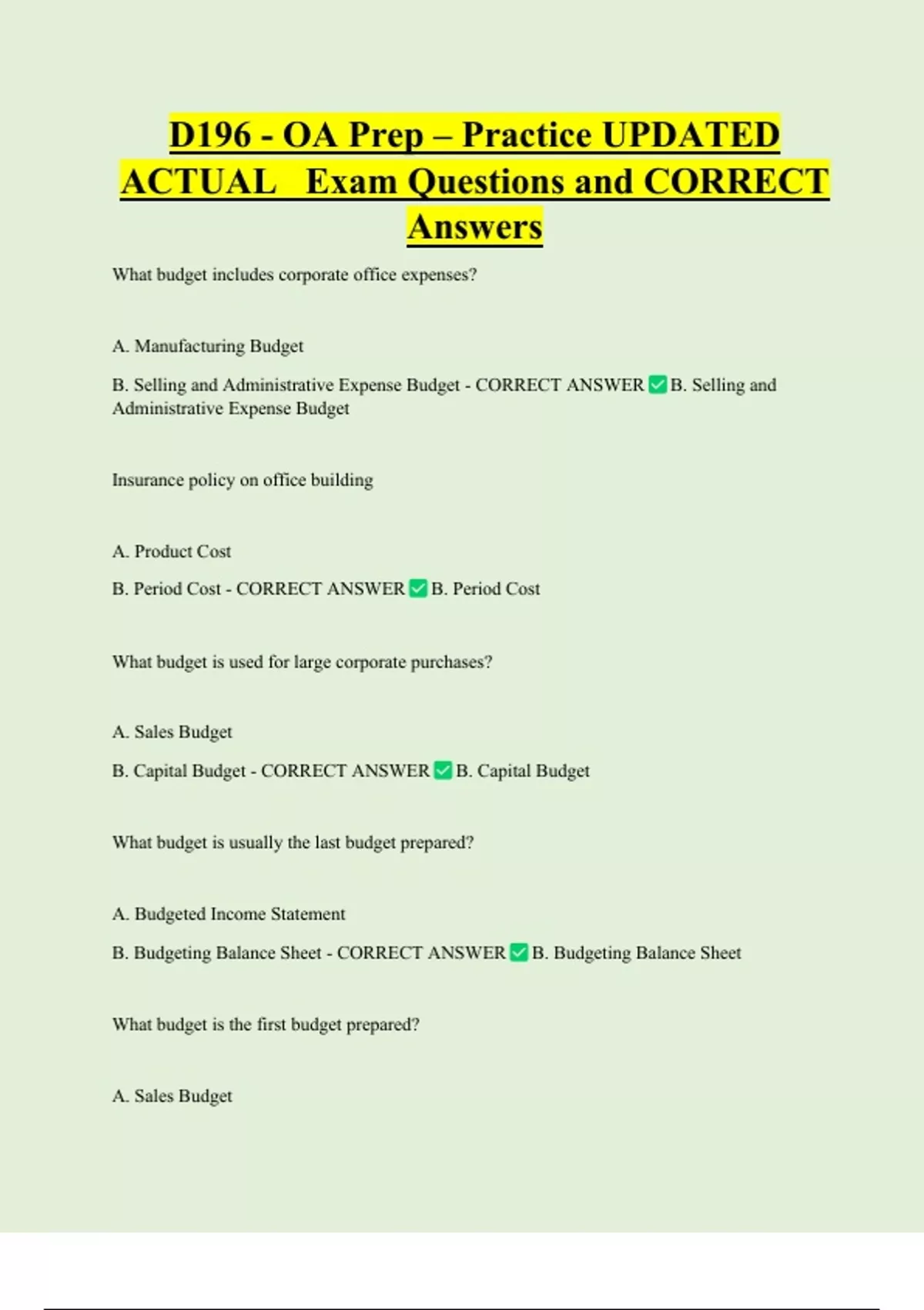 B. Capital Budget - CORRECT ANSWER B. Capital Budget