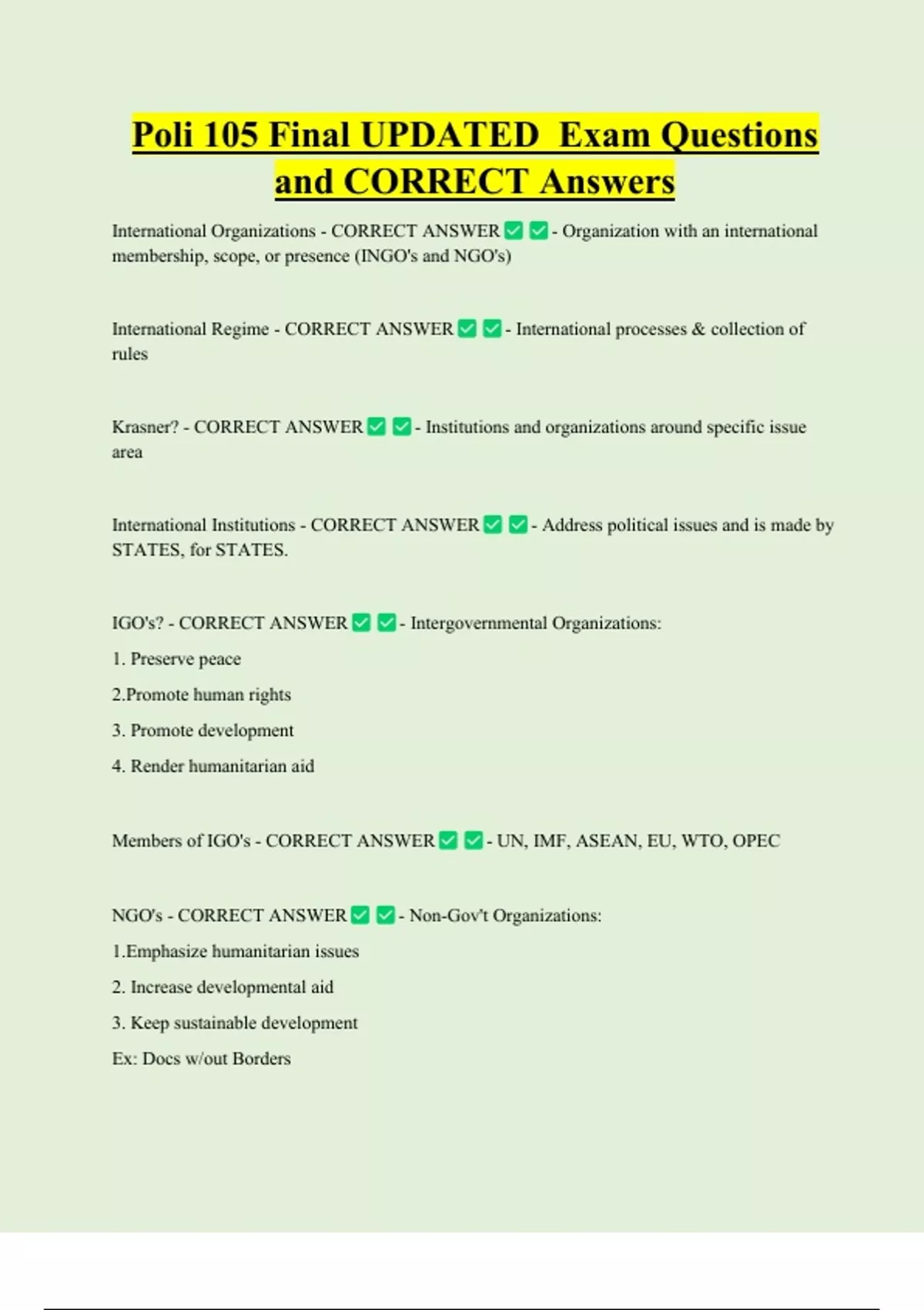 International Institutions - CORRECT ANSWER - Address political issues and is made by