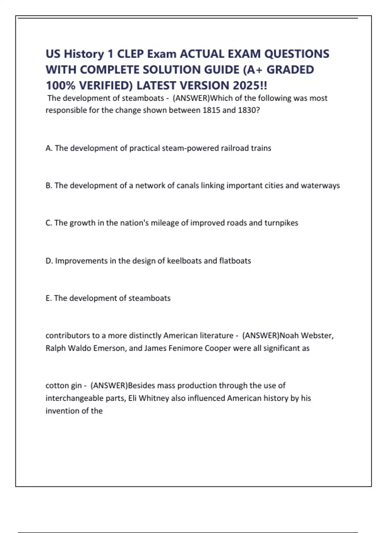 US History 1 CLEP Exam ACTUAL EXAM QUESTIONS WITH COMPLETE SOLUTION GUIDE (A+ GRADED 100% VERIFIED) LATEST VERSION 2025!!