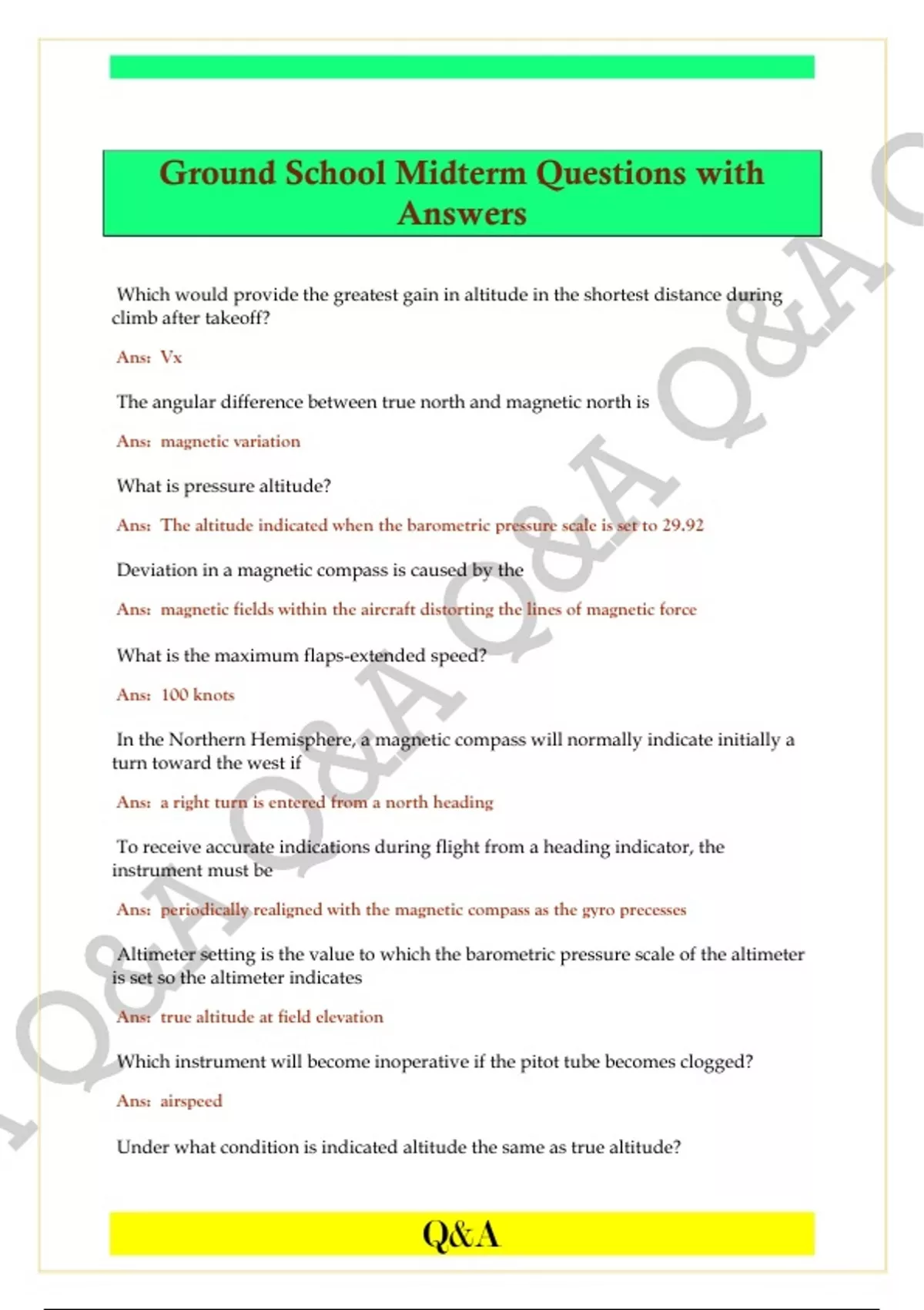 Ans: Altimeter will indicate 150 feet lower