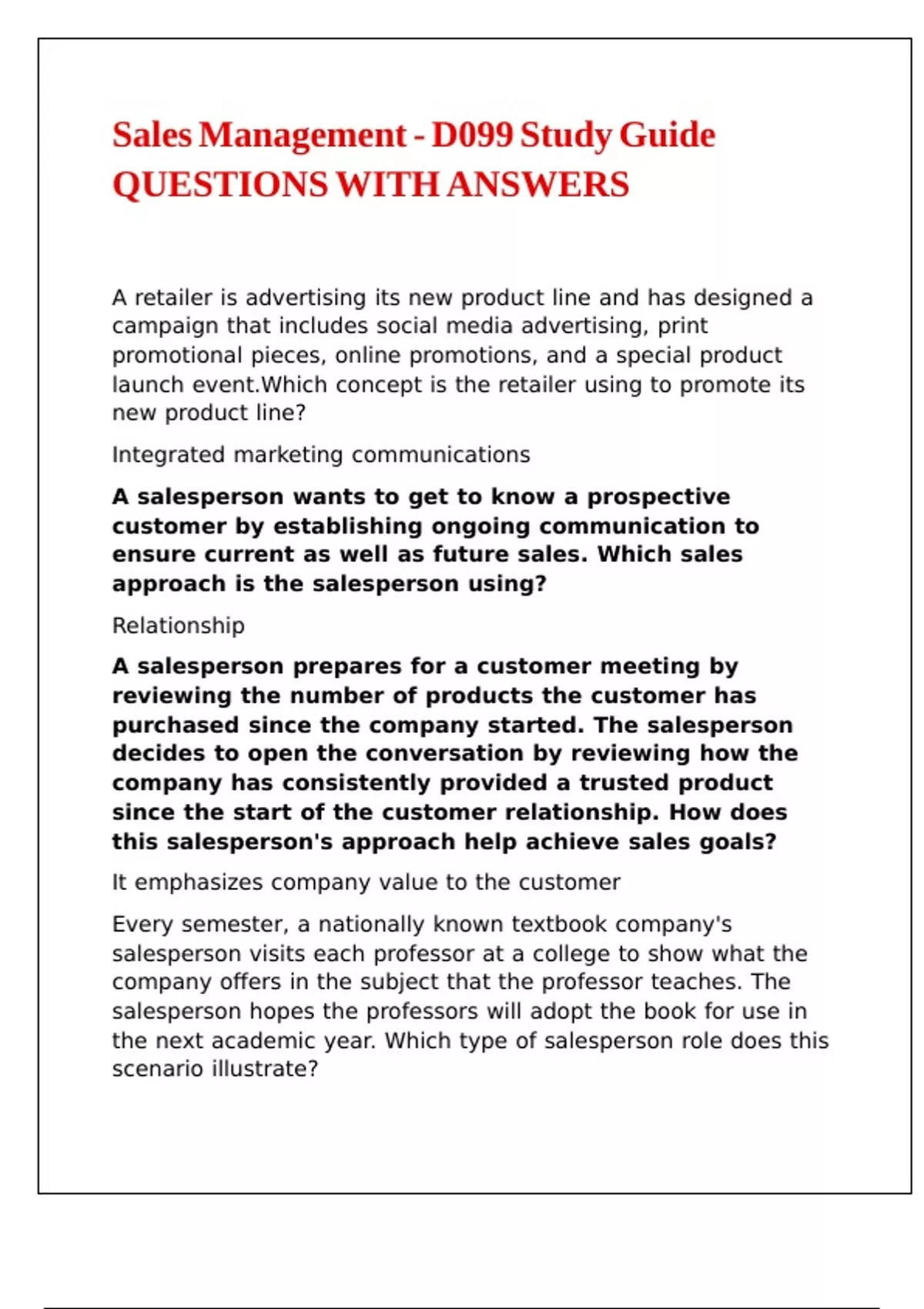 Sales Management - D099 Study Guide QUESTIONS WITH ANSWERS
