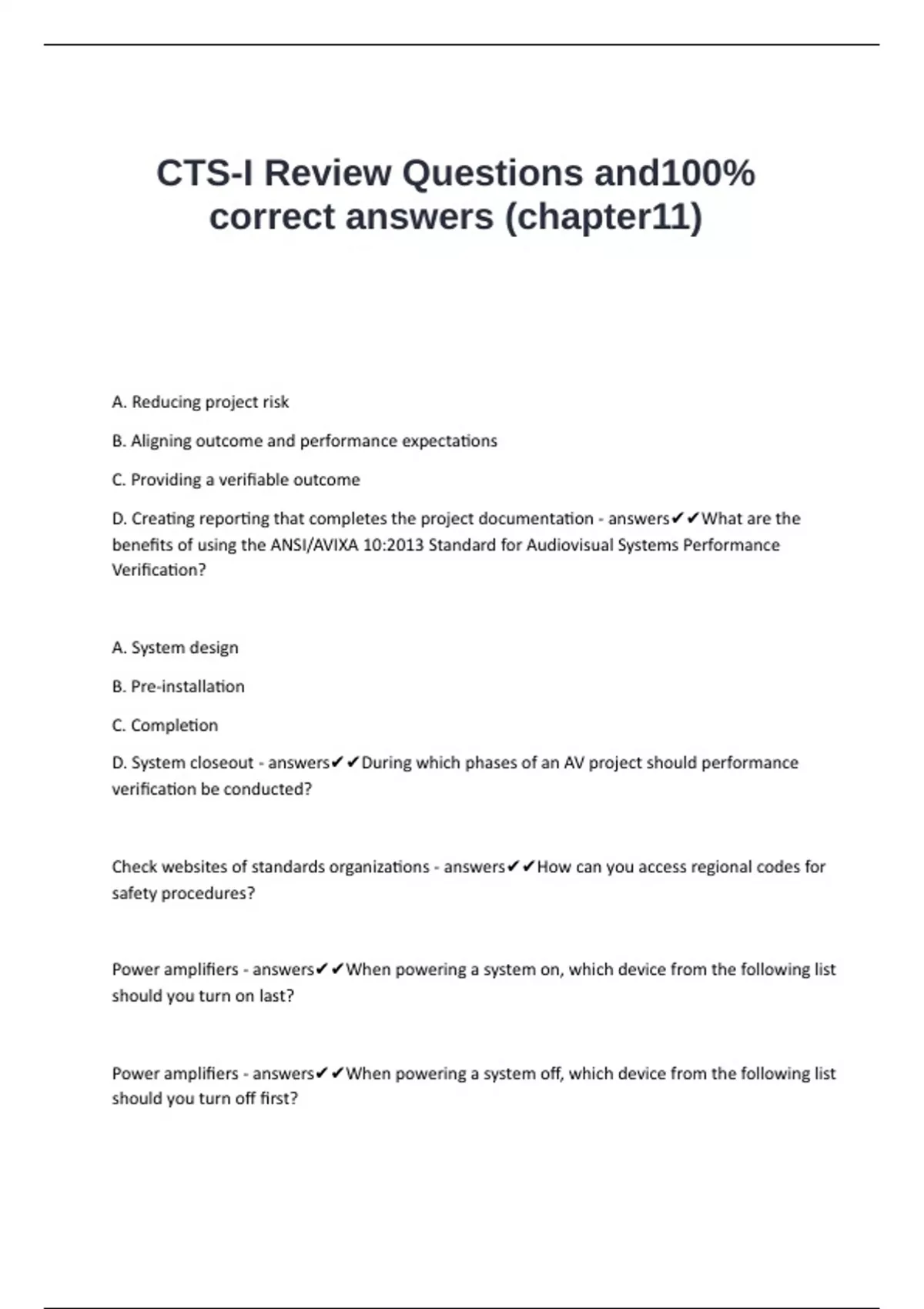 D. System closeout - answers✔✔During which phases of an AV project should performance