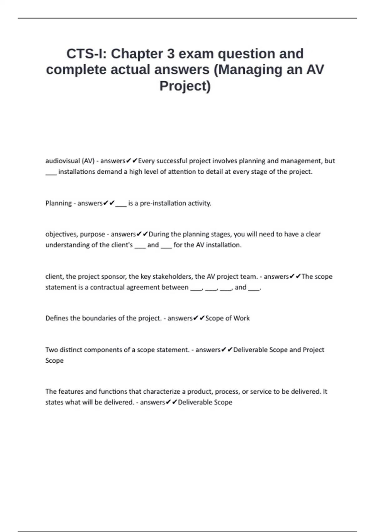 CTS-I Chapter 3 exam question and complete actual answers (Managing an AV Project).