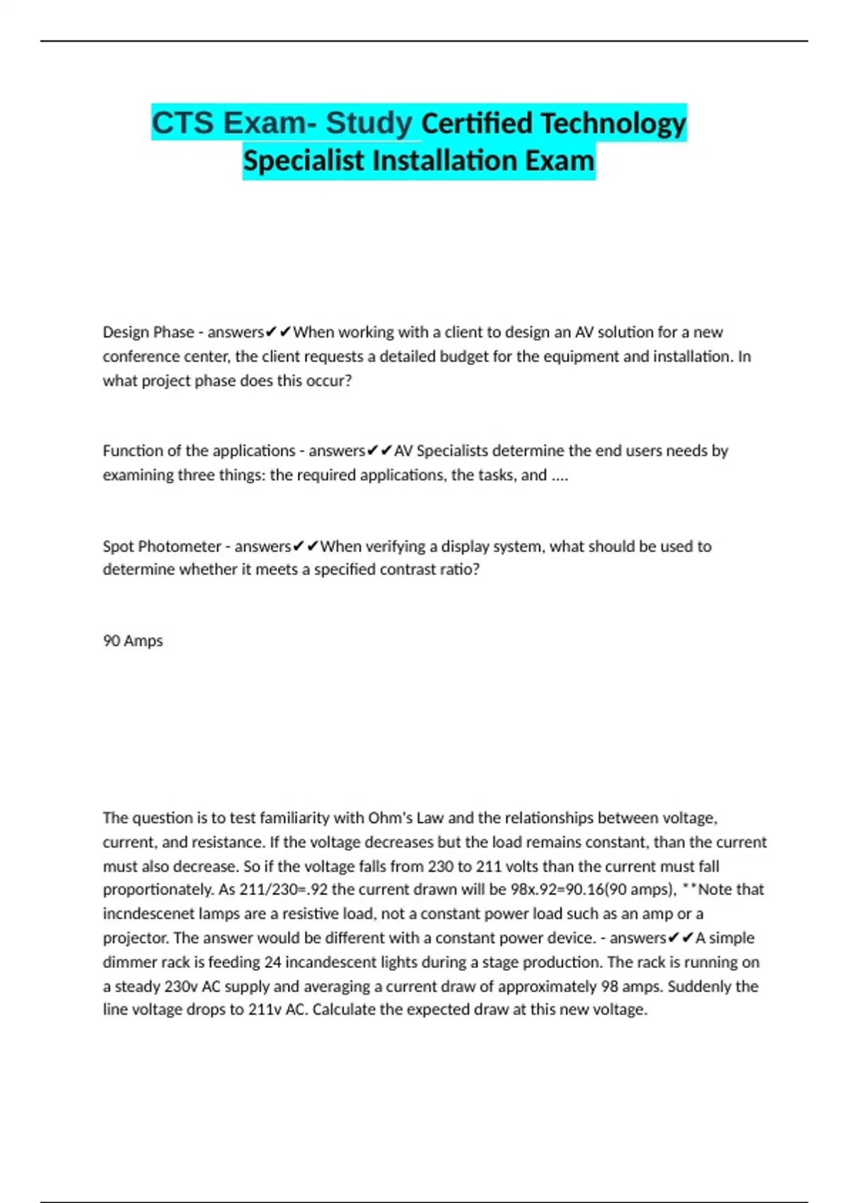 CTS Exam- Study Certified Technology Specialist Installation Exam