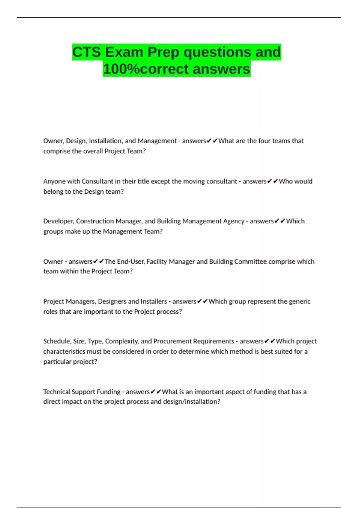 CTS Exam Prep questions and 100-correct answers.