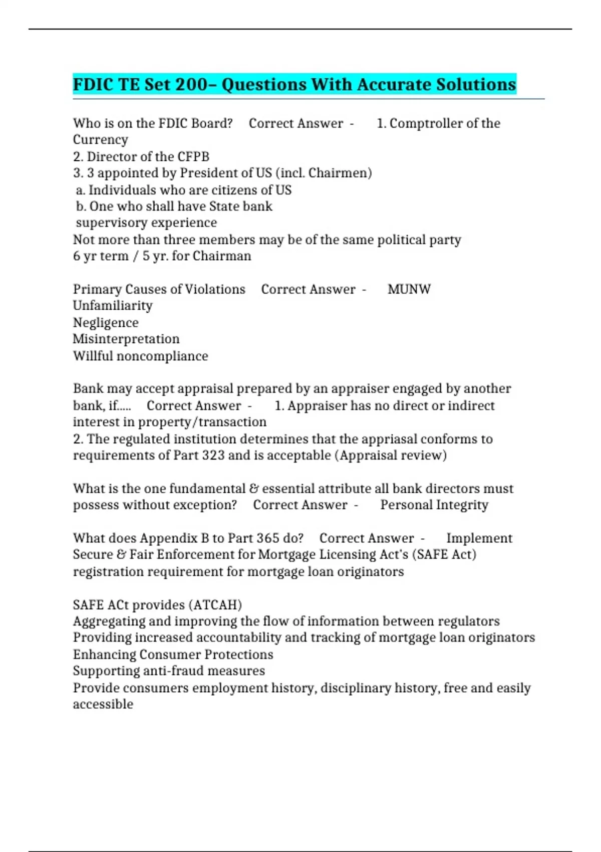 FDIC TE Set 200– Questions With Accurate Solutions