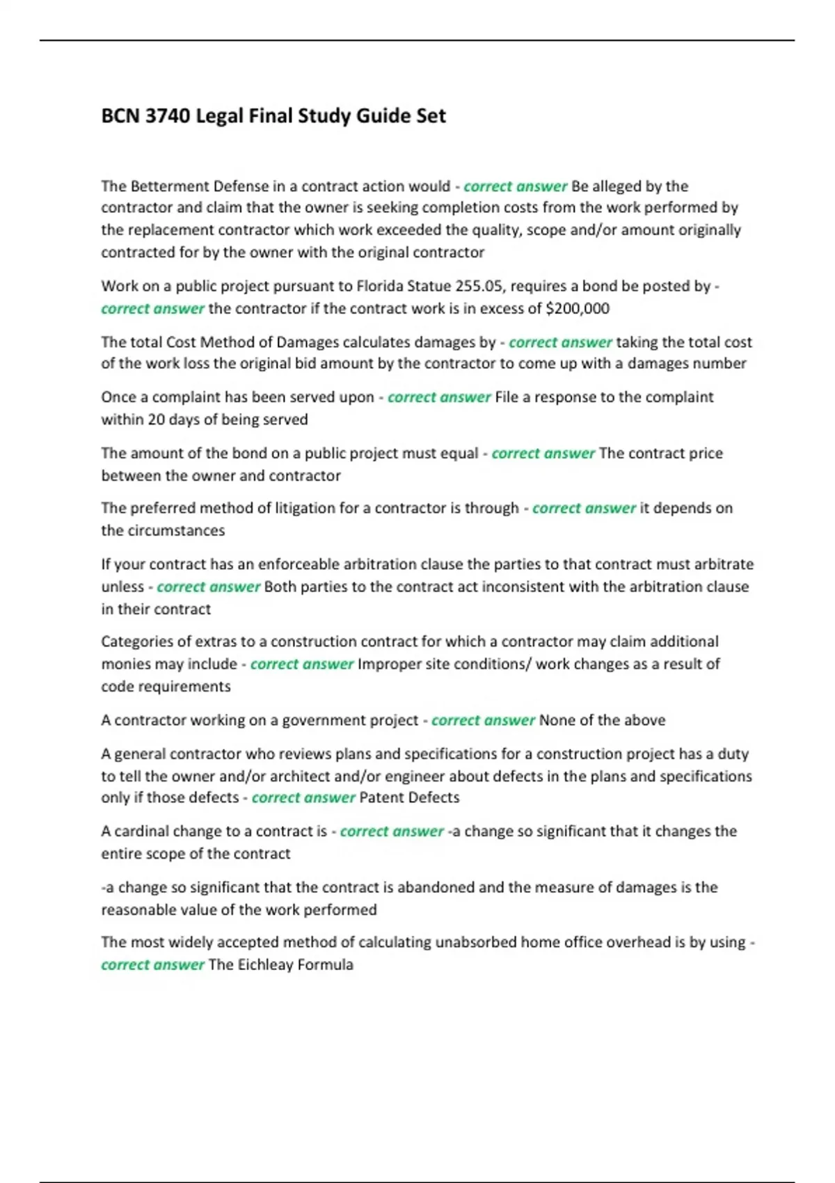 The Betterment Defense in a contract action would - correct answer Be alleged by the