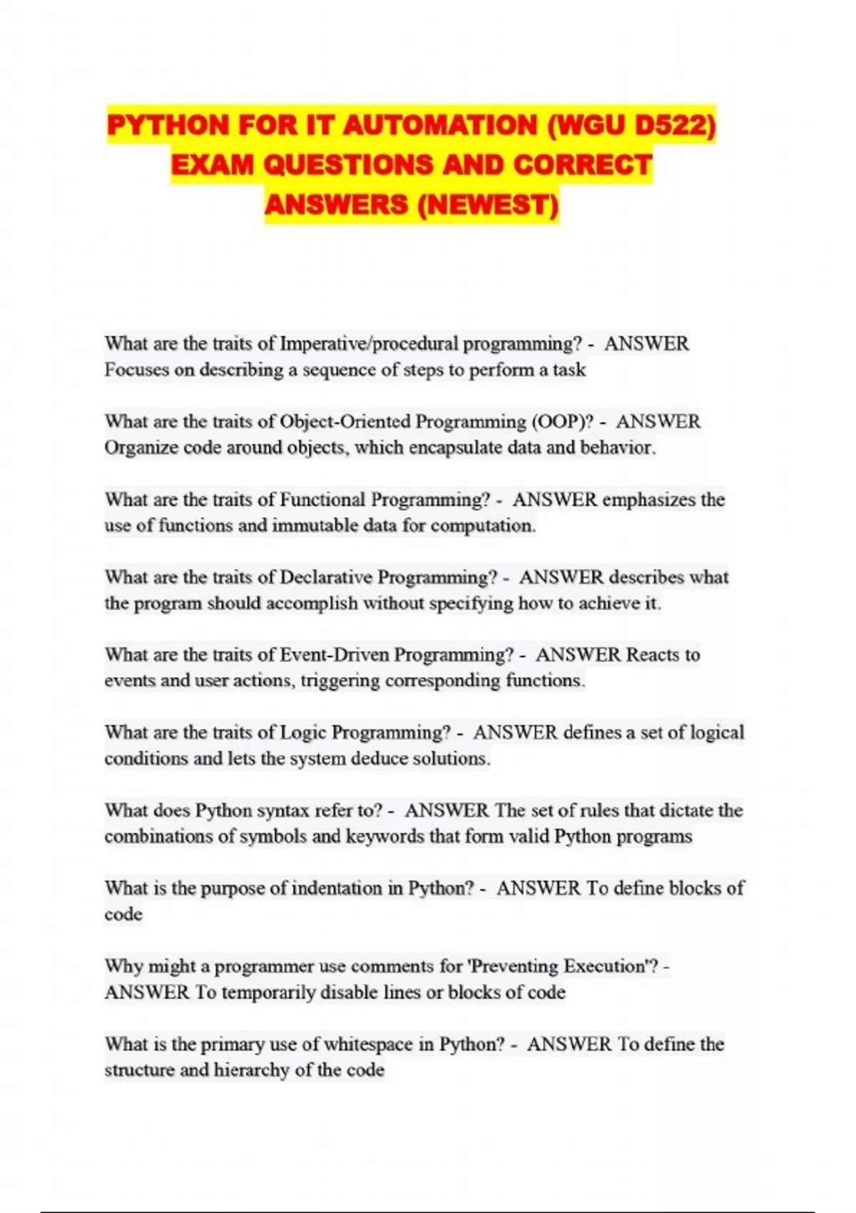 PYTHON FOR IT AUTOMATION (WGU D522) EXAM QUESTIONS AND CORRECT ANSWERS (NEWEST)...