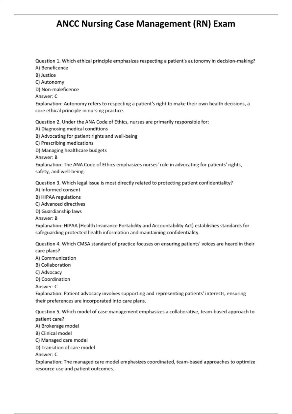 , ANCC Nursing Case Management (RN) Exam