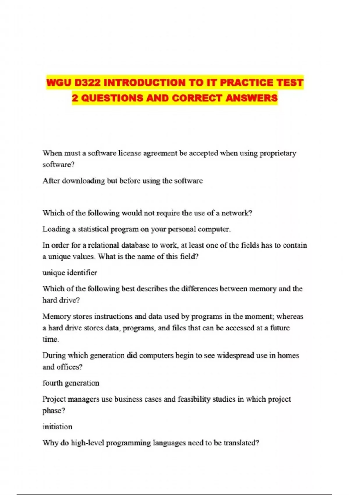 WGU D322 INTRODUCTION TO IT PRACTICE TEST 2 QUESTIONS AND CORRECT ANSWERS....