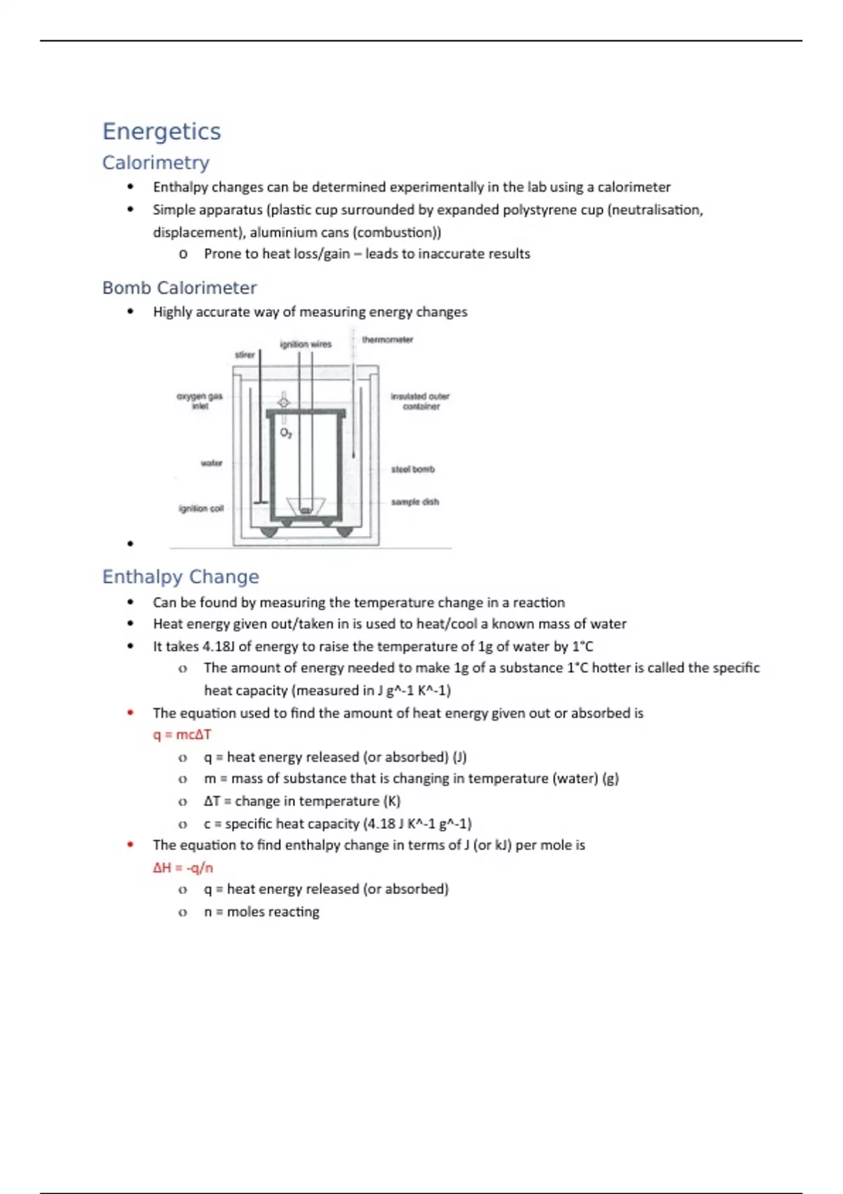 Enthalpy changes can be determined experimentally in the lab using a calorimeter