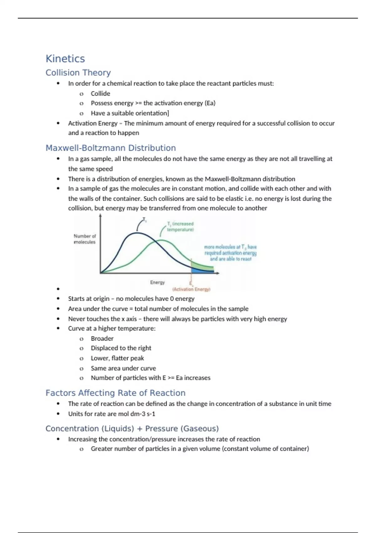 Summary Kinetics Notes - AQA Chemistry A Level