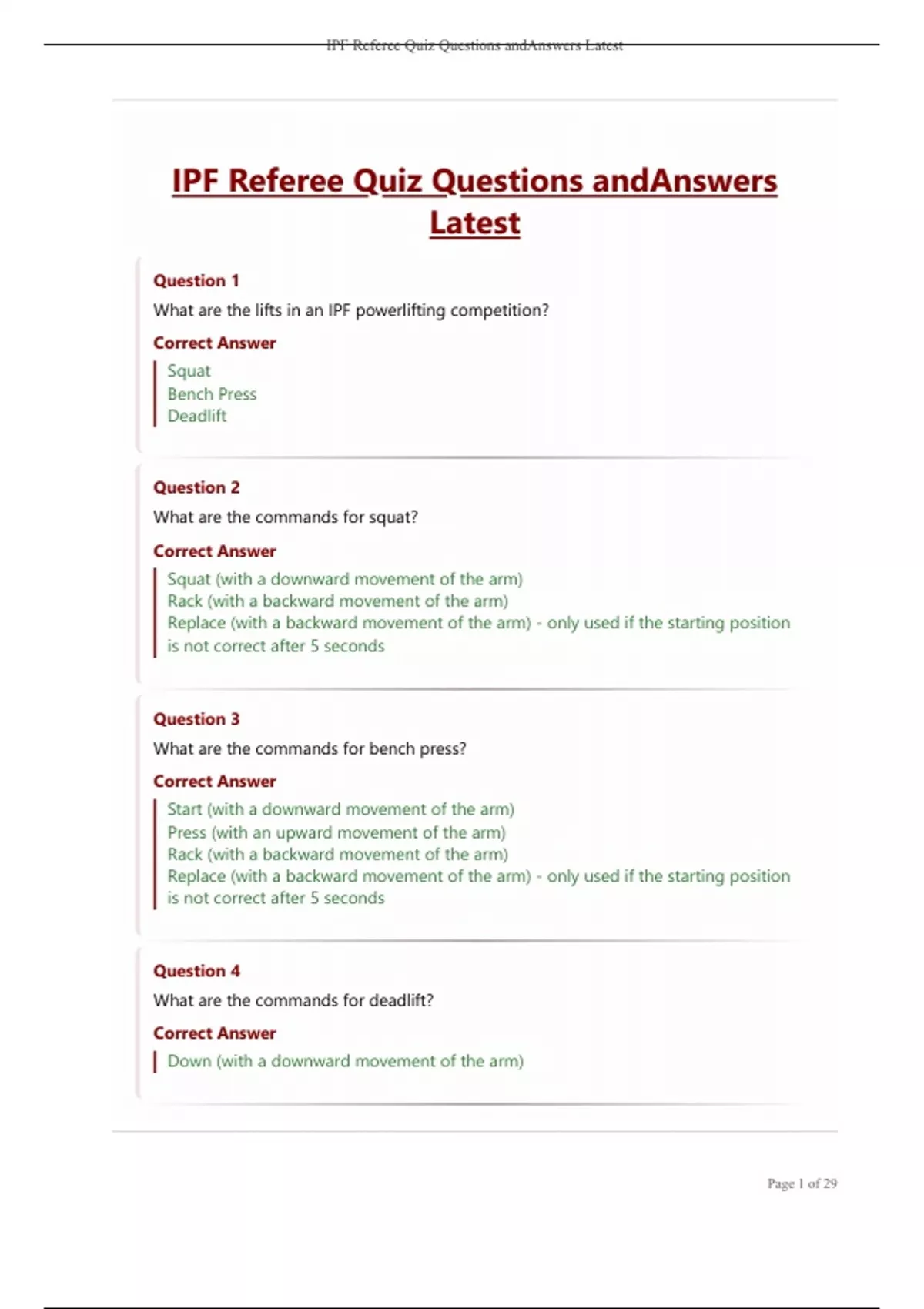 IPF Referee Quiz Questions andAnswers