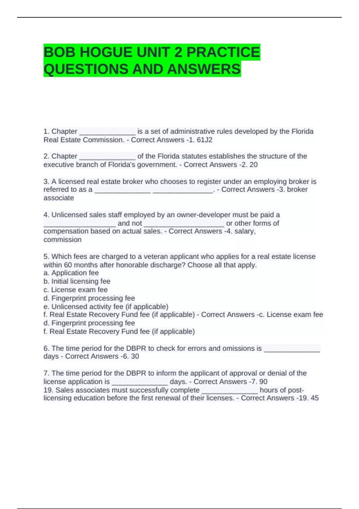 BOB HOGUE UNIT 2 PRACTICE QUESTIONS AND ANSWERS