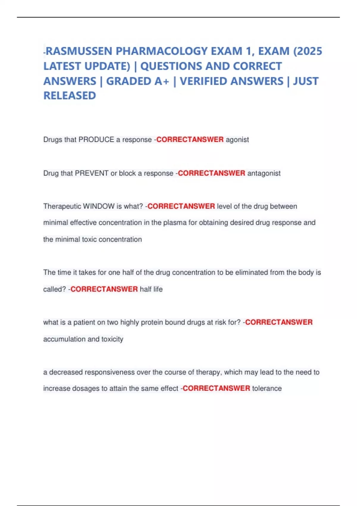 -RASMUSSEN PHARMACOLOGY EXAM 1, EXAM (2025
