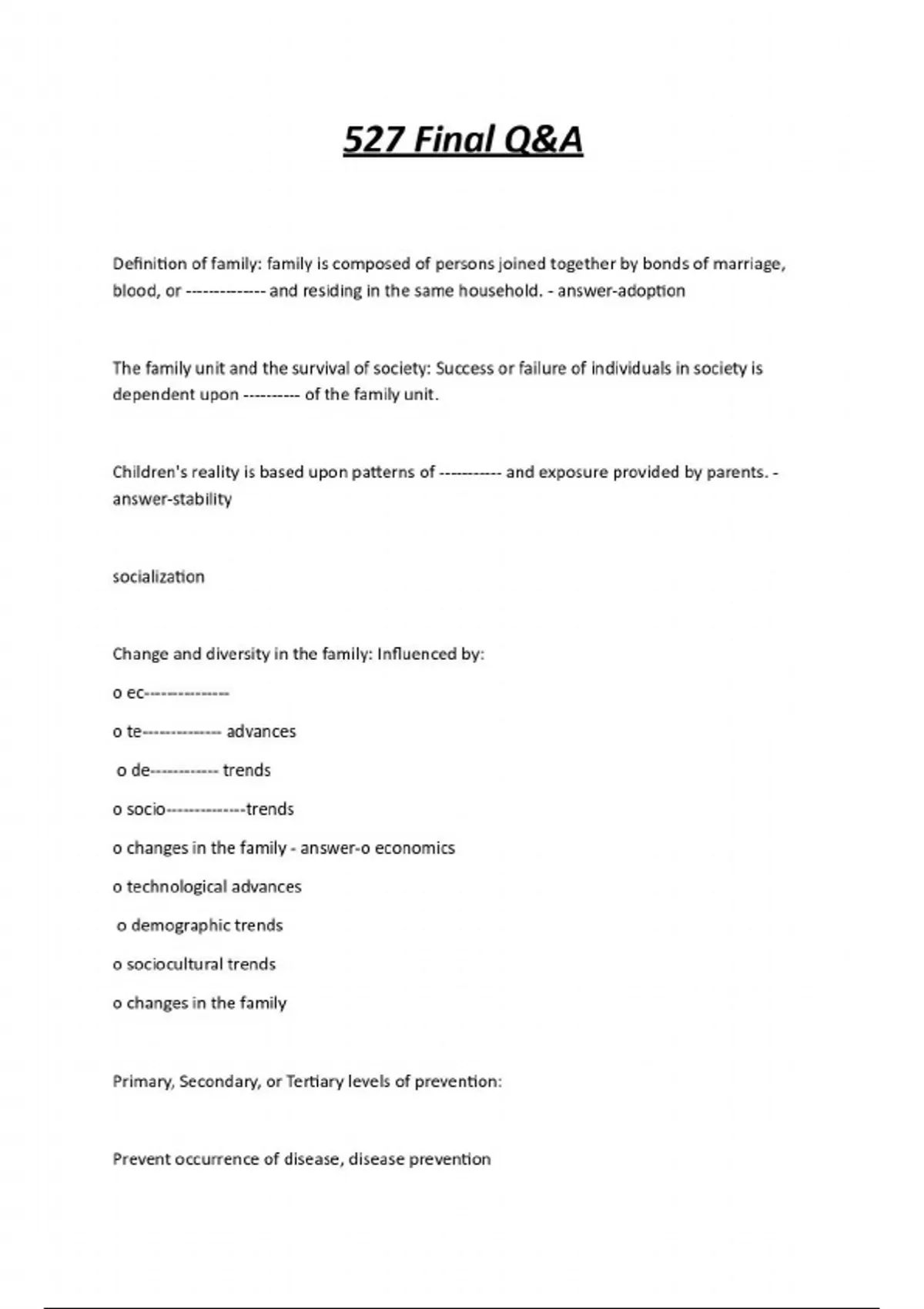 PVL2601 Assignment 2 Semester Q&A What is the law of succession? - answer-Legal rules and procedures to transfer property from one person (B) to another person (C) on the death of the first person (B). In other words, it's the legal rules that determine what should be done with the property of a person who has died. Types of succession - answer-• Testate • Intestate • Contract Testate - answer-Testator draws up a will and provides in the will how the deceased estate must devolve. Intestate - answer-• When the testator does not have a valid will • or if the will fails, then the *Intestate Succession Act* determines who will inherit Contract - answer-• Between the deceased and another person • called a pactum successorium • To be valid it must be contained in an antenuptial contract Ground rules for succession - answer-1. Owner of the deceased estate must have died 2. Beneficiary must be alive or conceived when the benefit vests...