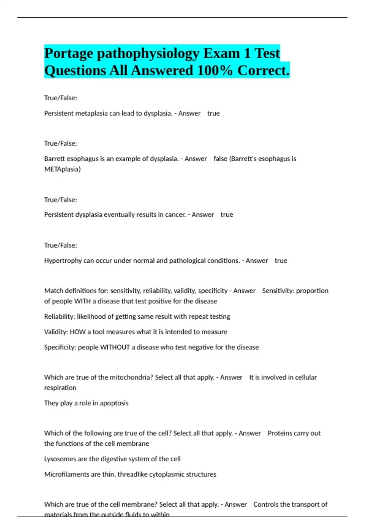 Questions All Answered 100% Correct.