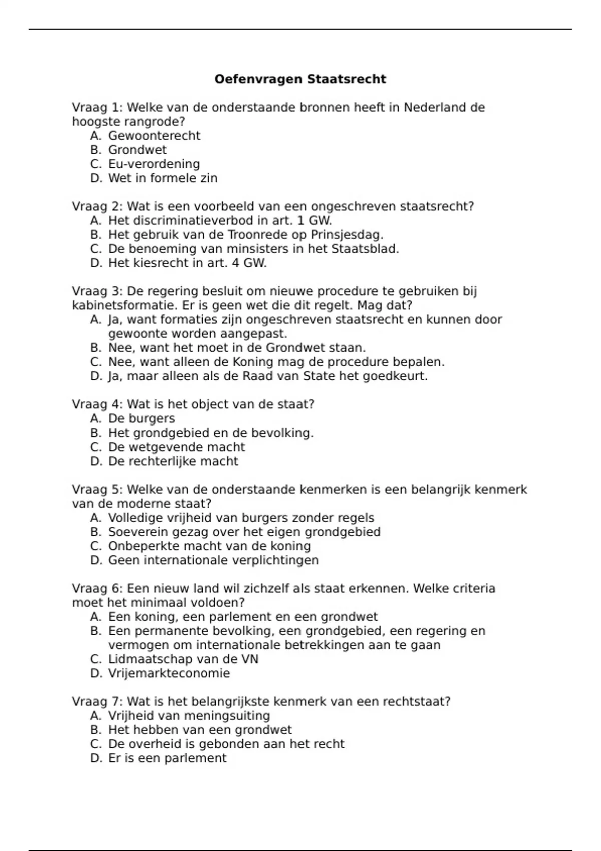 Vraag 2: Wat is een voorbeeld van een ongeschreven staatsrecht?