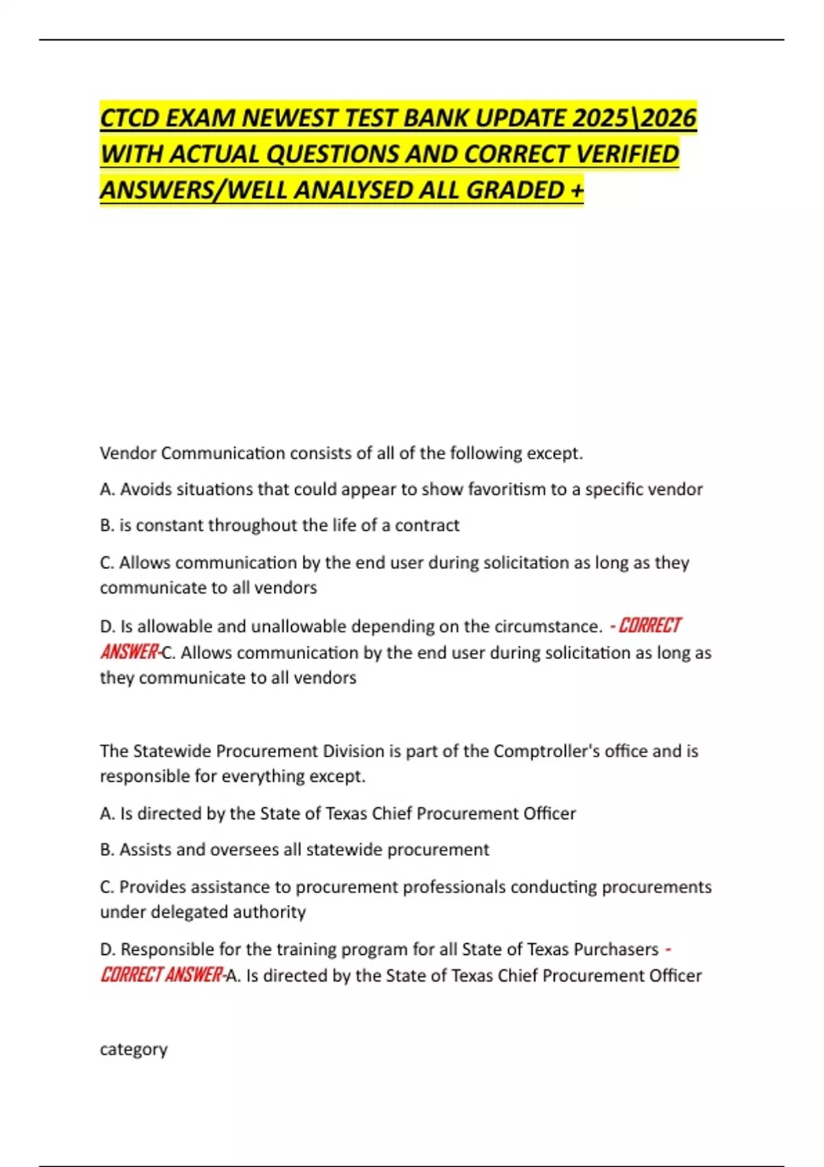 CORRECT ANSWER-A. Is directed by the State of Texas Chief Procurement Officer