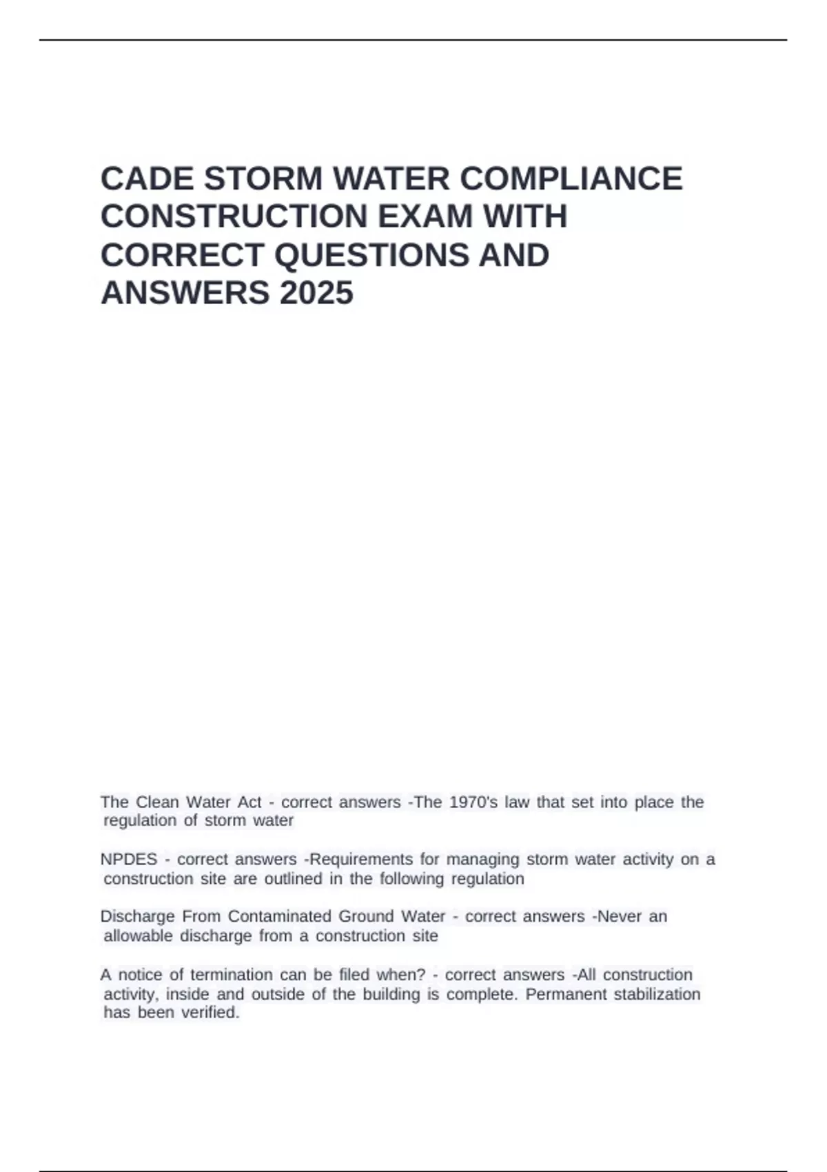 CADE STORM WATER COMPLIANCE CONSTRUCTION EXAM