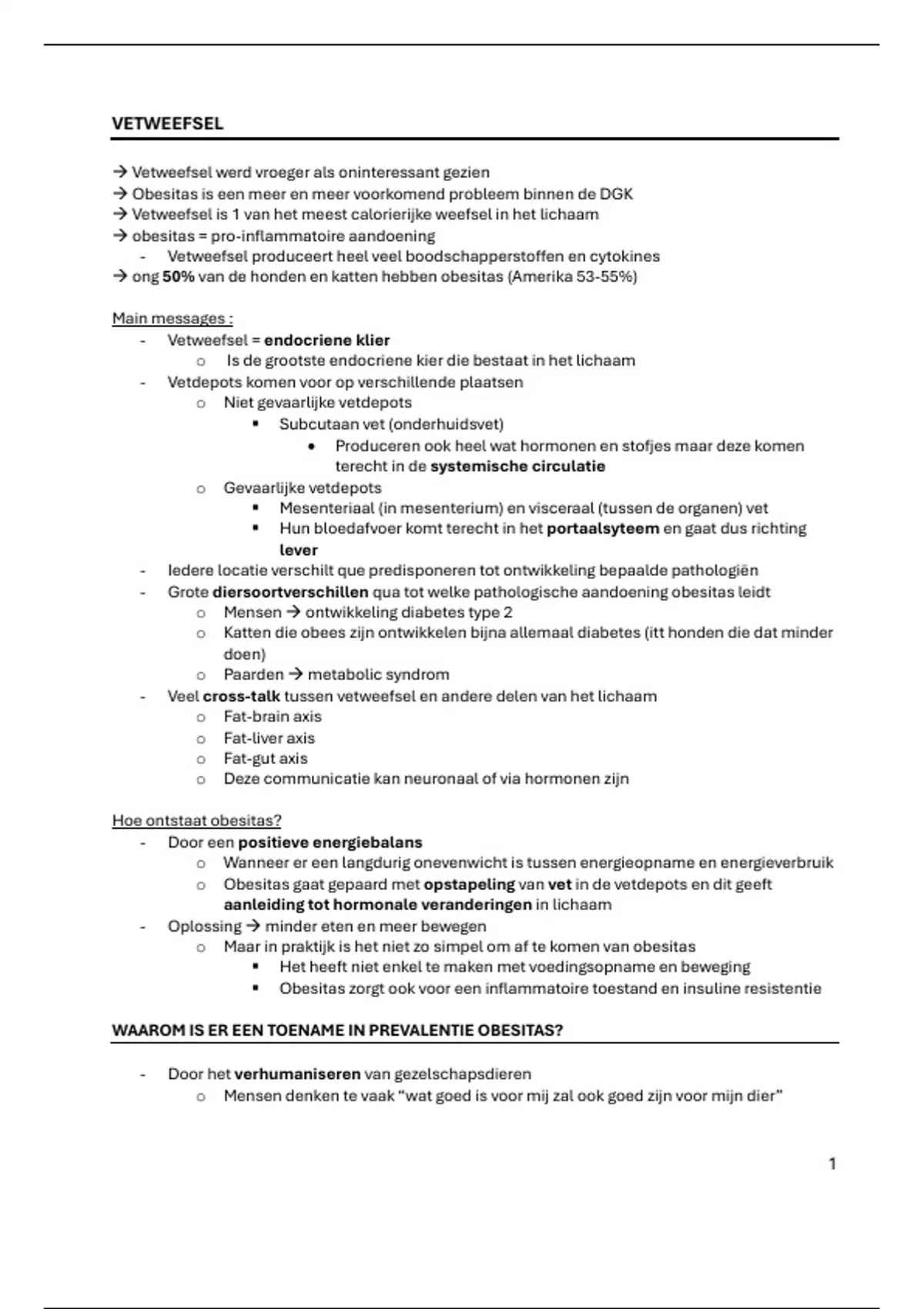 - Grote diersoortverschillen qua tot welke pathologische aandoening obesitas leidt