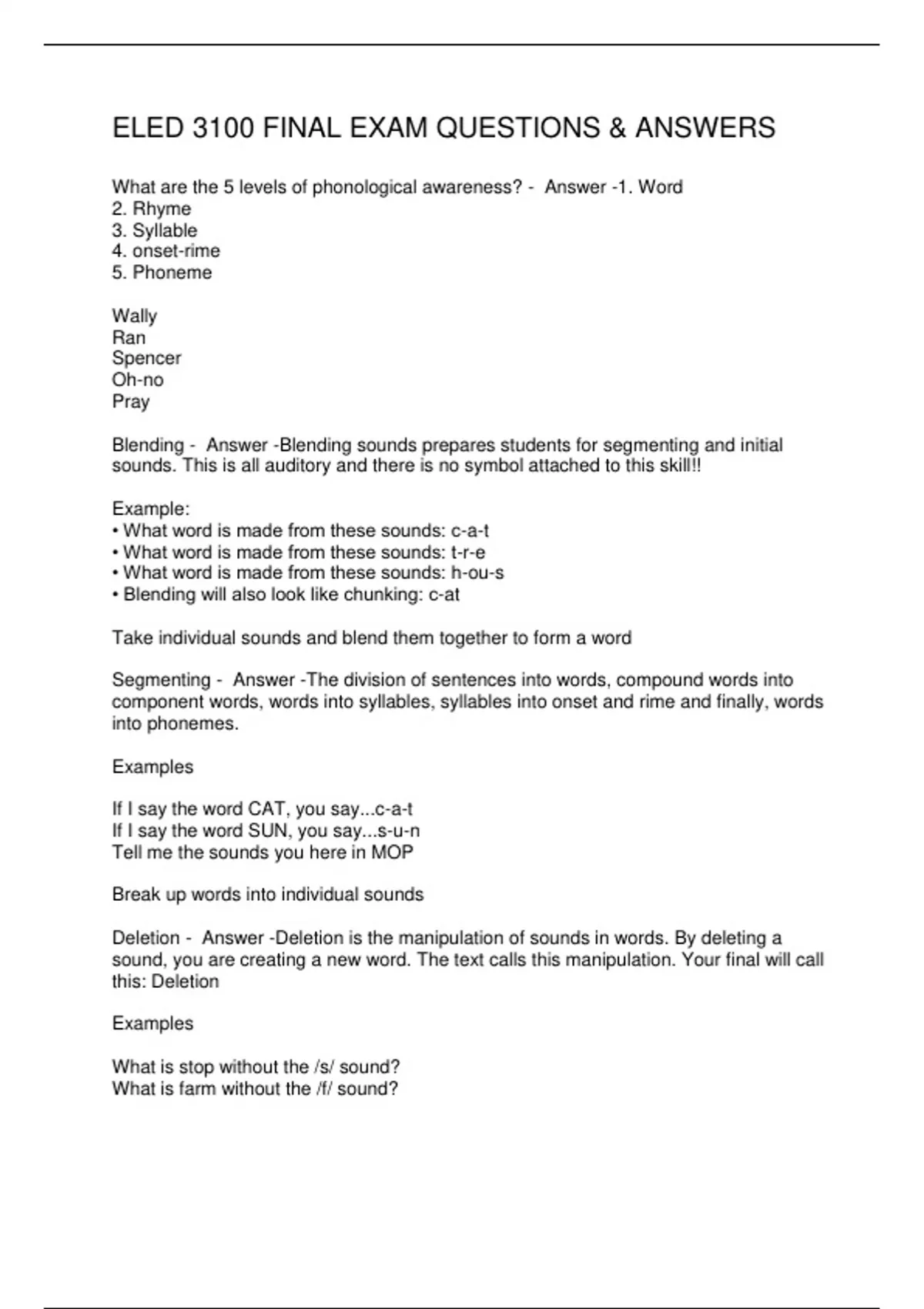 What are the 5 levels of phonological awareness? - Answer -1. Word