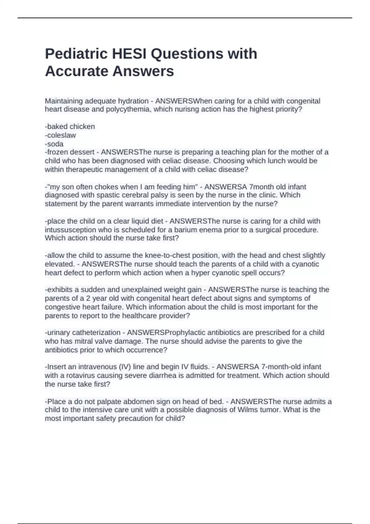 -frozen dessert - ANSWERSThe nurse is preparing a teaching plan for the mother of a