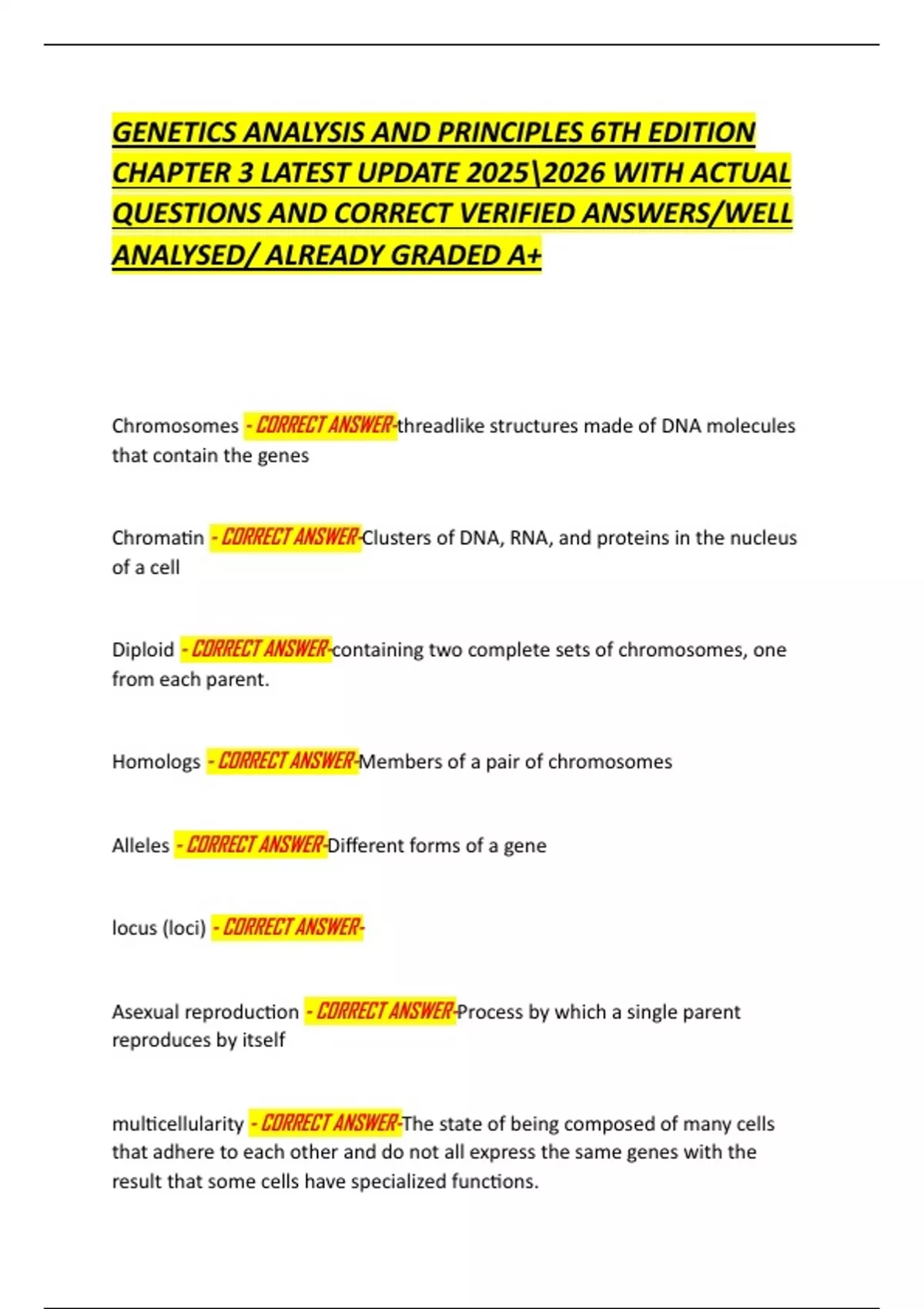 GENETICS ANALYSIS AND PRINCIPLES 6TH EDITION CHAPTER 3 LATEST UPDATE WITH ACTUAL QUESTIONS AND CORRECT VERIFIED ANSWERS/WELL ANALYSED/ ALREADY GRADED A+