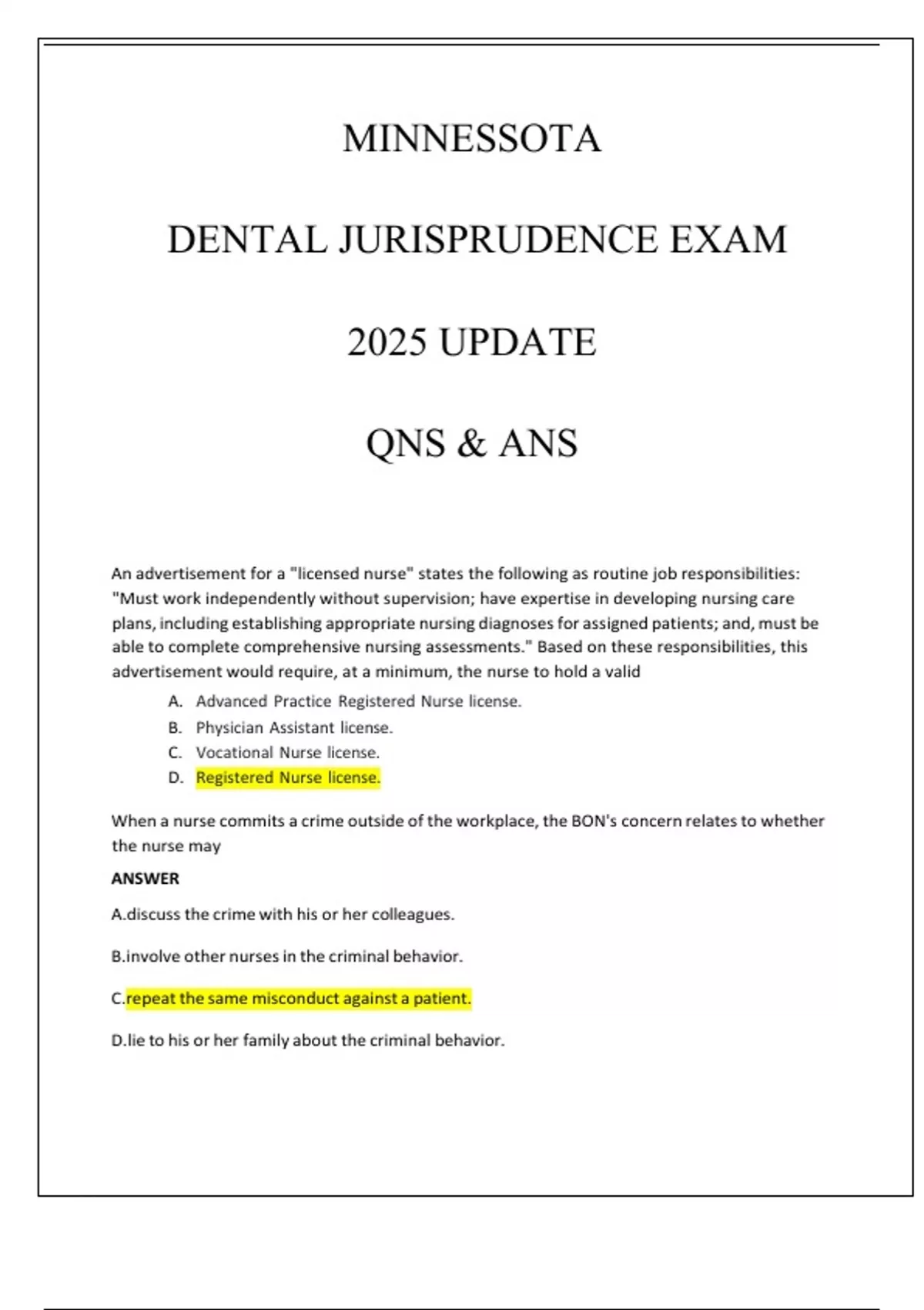 An advertisement for a "licensed nurse" states the following as routine job responsibilities:
