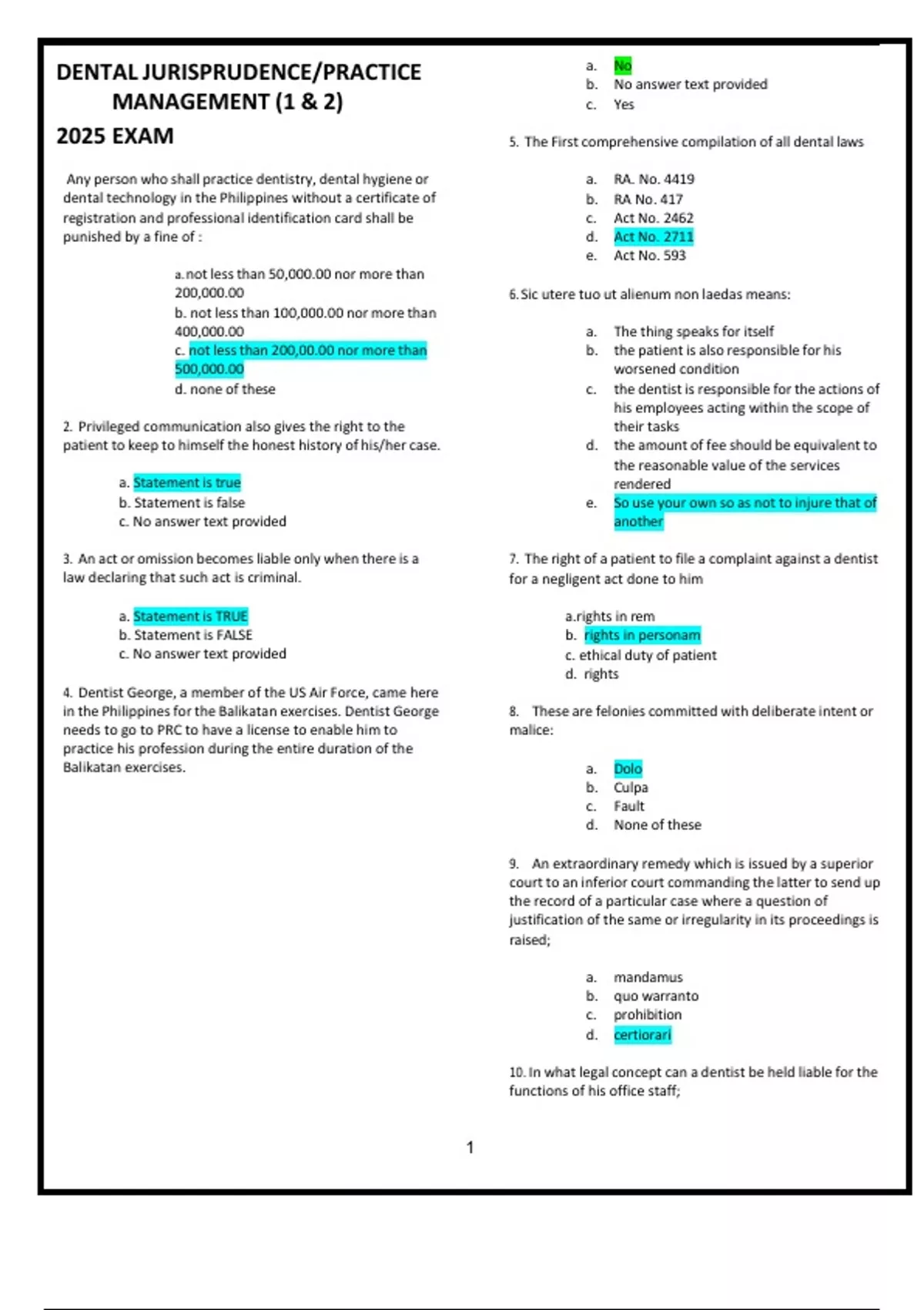 DENTAL JURISPRUDENCE/PRACTICE b. No answer text provided