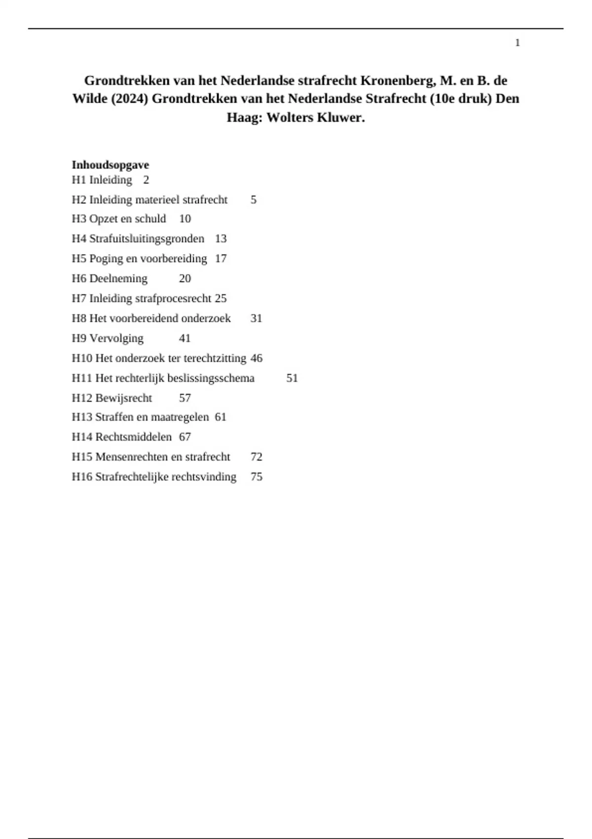 Wilde (2024) Grondtrekken van het Nederlandse Strafrecht (10e druk) Den