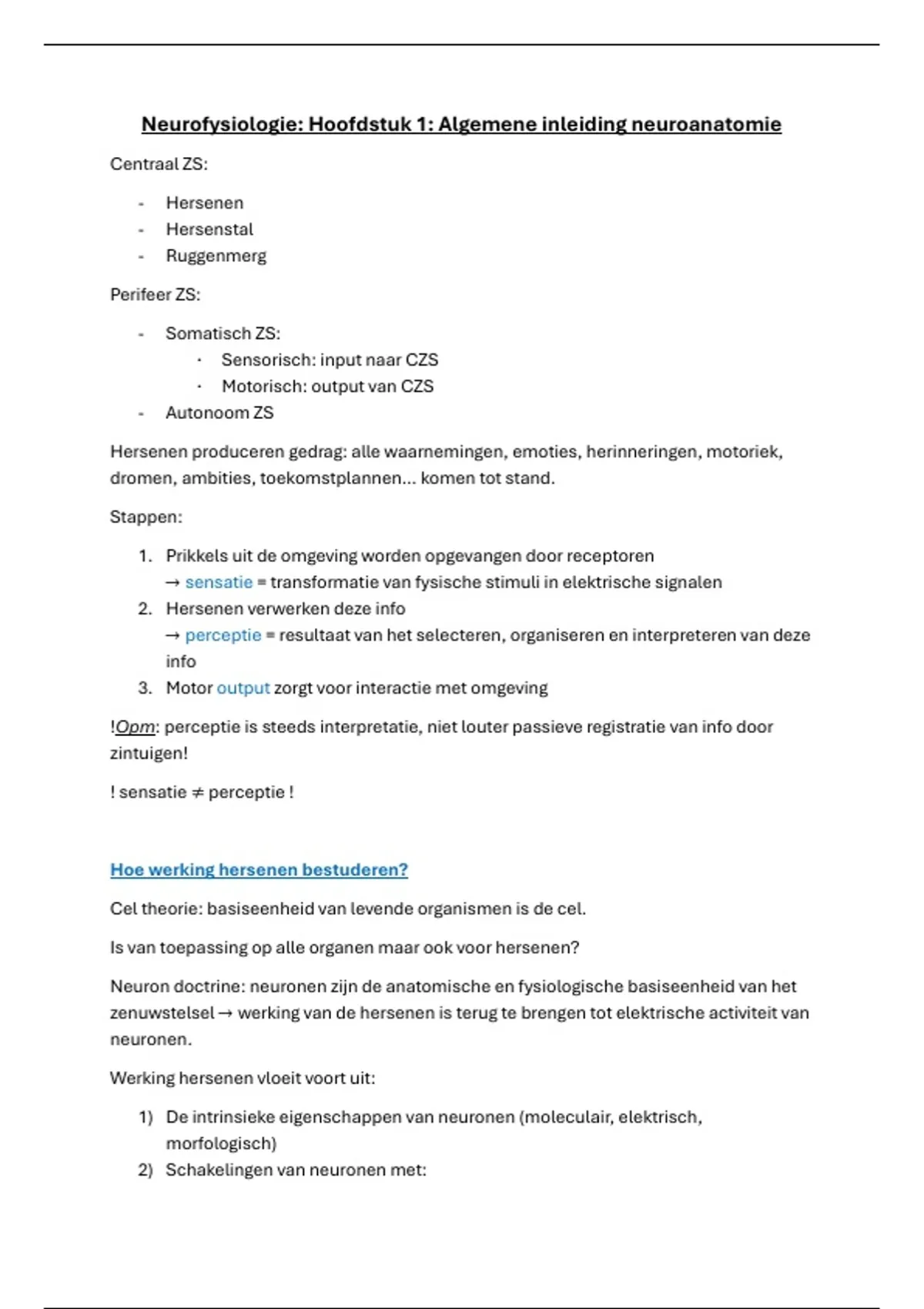 Neurofysiologie: Hoofdstuk 1: Algemene inleiding neuroanatomie