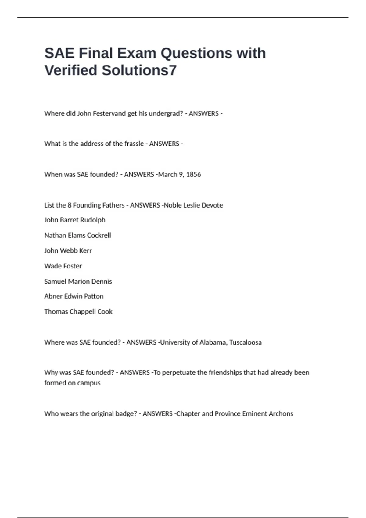 List the 8 Founding Fathers - ANSWERS -Noble Leslie Devote