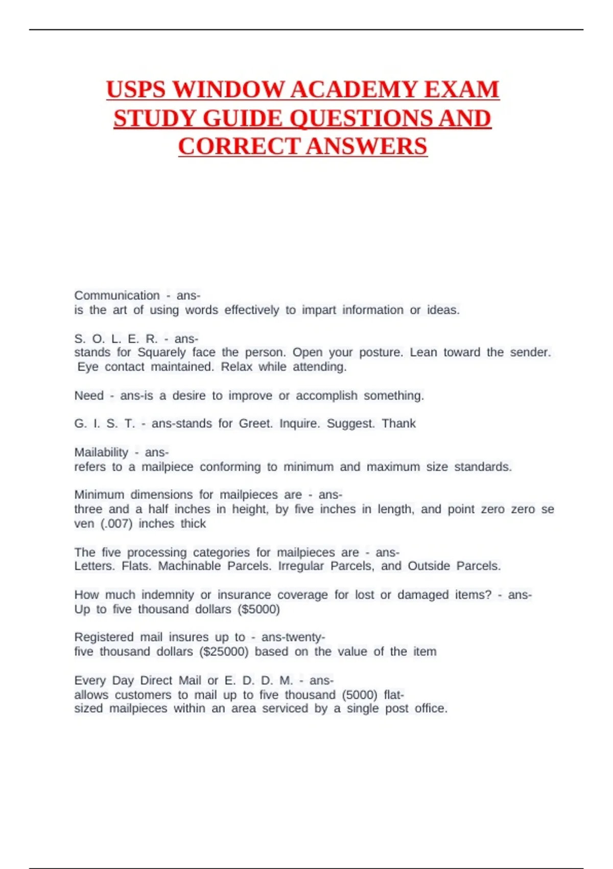 USPS WINDOW ACADEMY EXAM