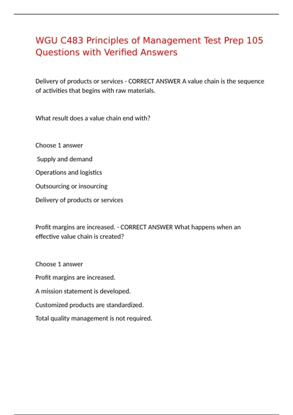 Delivery of products or services - CORRECT ANSWER A value chain is the sequence