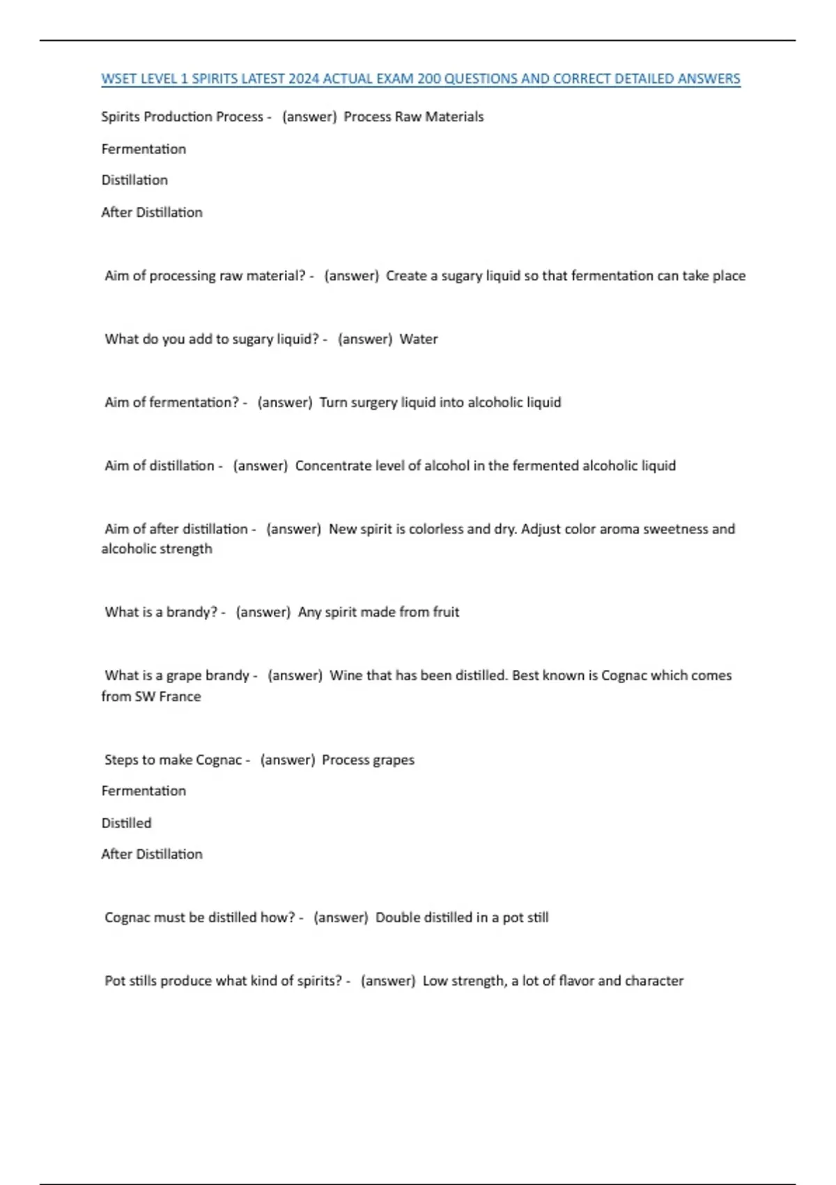 , WSET LEVEL 1 SPIRITS LATEST 2024 ACTUAL EXAM 200 QUESTIONS AND CORRECT DETAILED ANSWERS