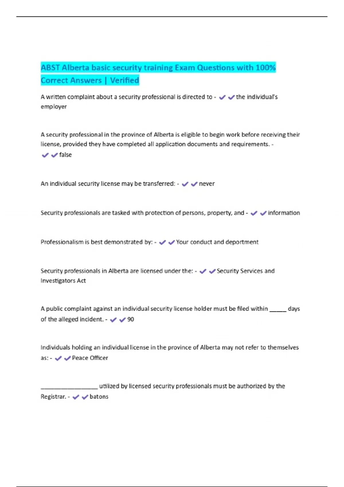 ABST Alberta basic security training Exam Questions with 100% Correct Answers | Verified