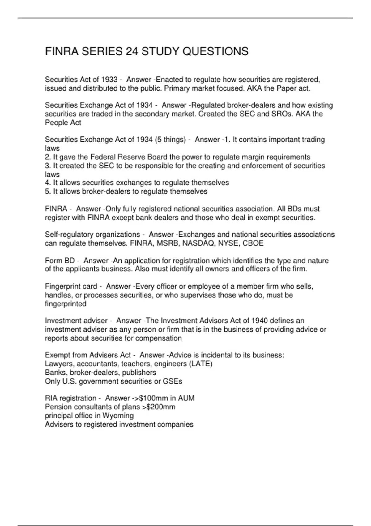 Securities Act of 1933 - Answer -Enacted to regulate how securities are registered,