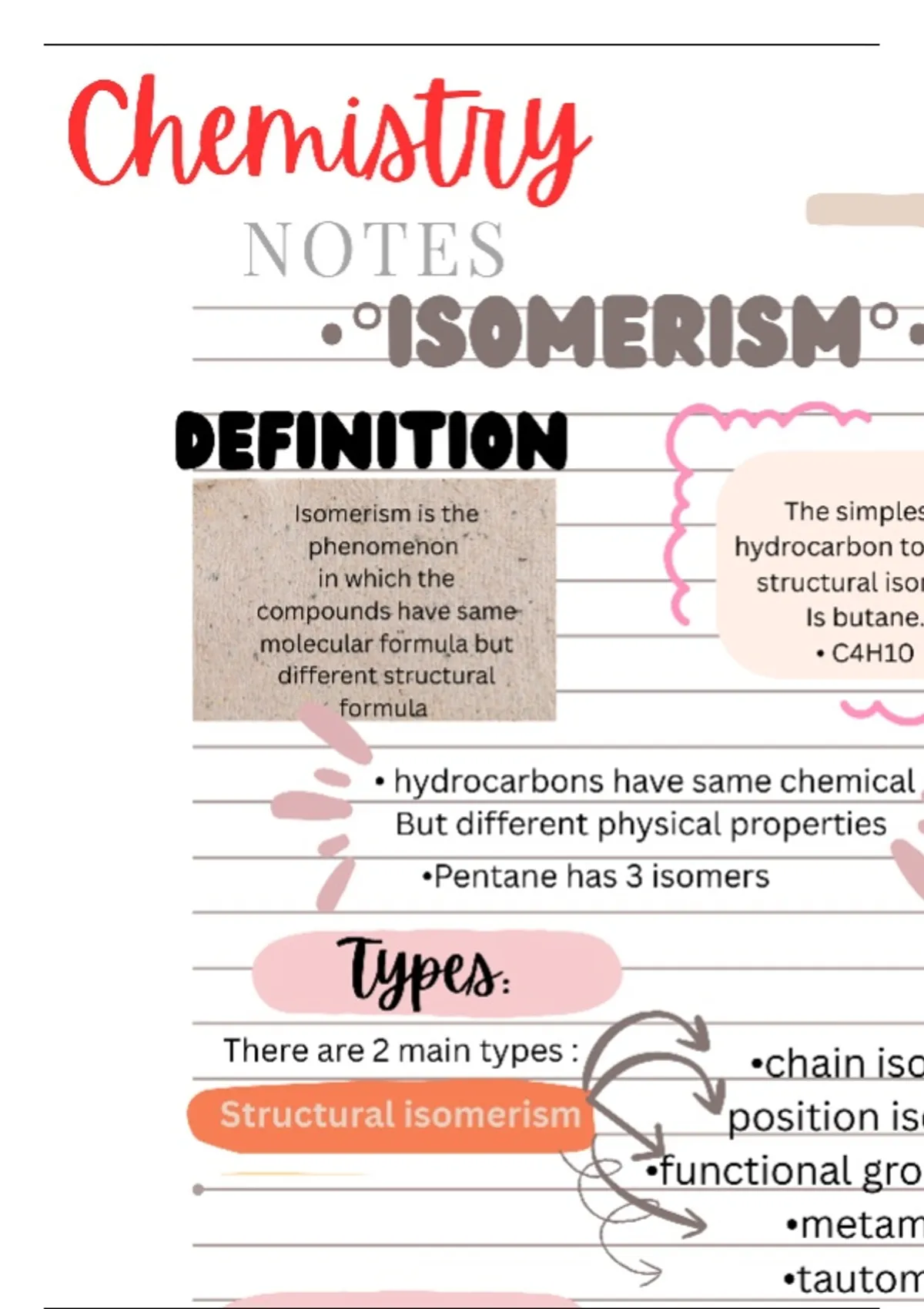 A topic derived from 2nd year chemistry book of the Punjab board. It contains authentic information about isomerism. The types are discussed in detail. Proper examples are given. The notes are easy to memorize and best for exam preparation