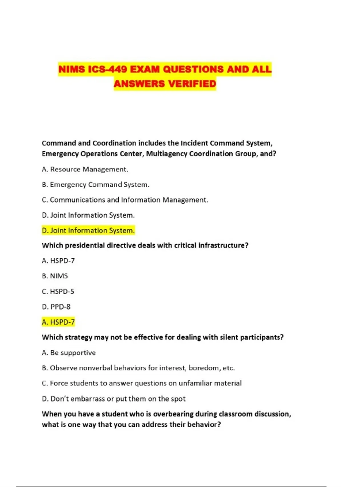 NIMS ICS-449 EXAM QUESTIONS AND ALL ANSWERS VERIFIED