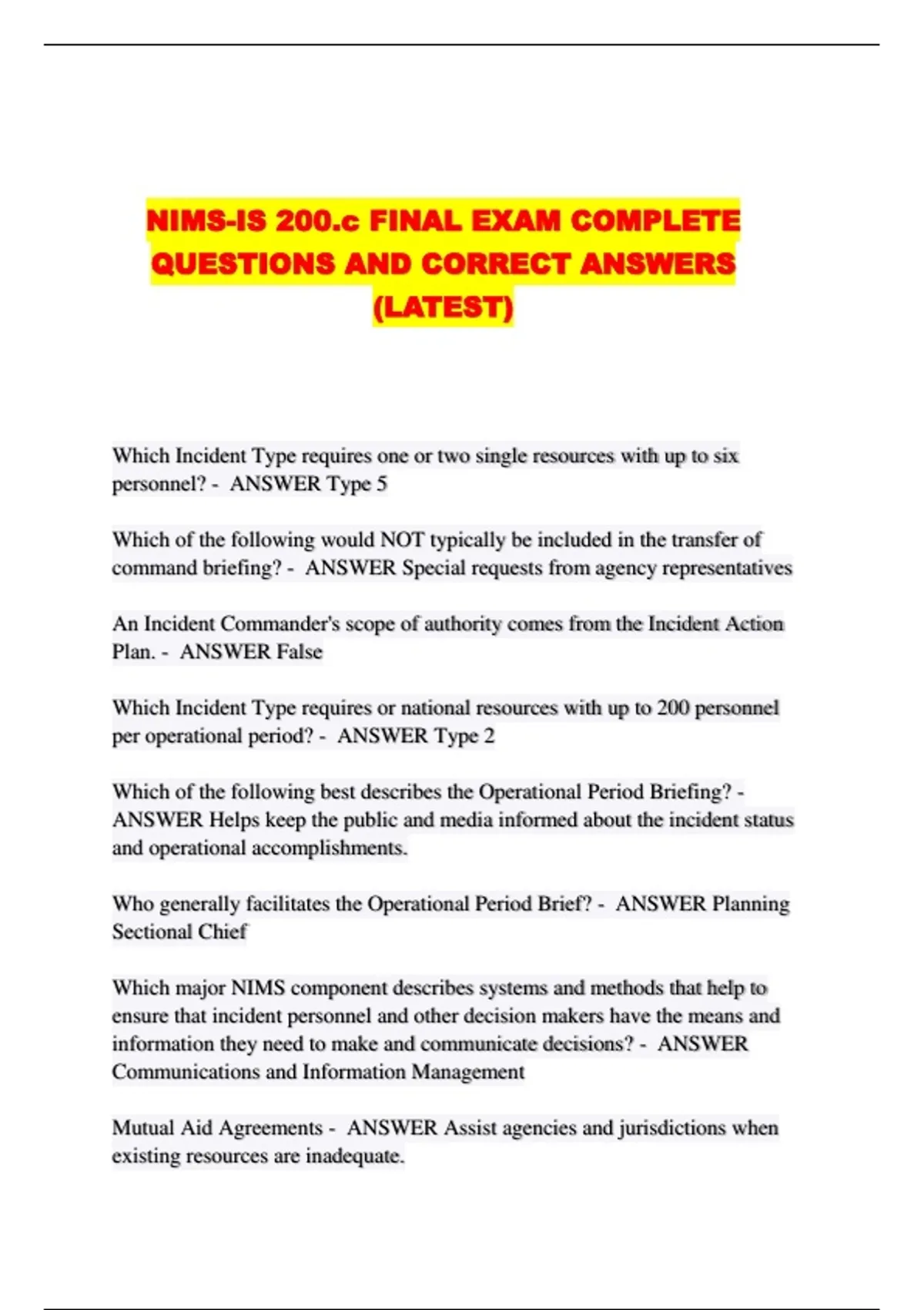 NIMS-IS 200.c FINAL EXAM COMPLETE