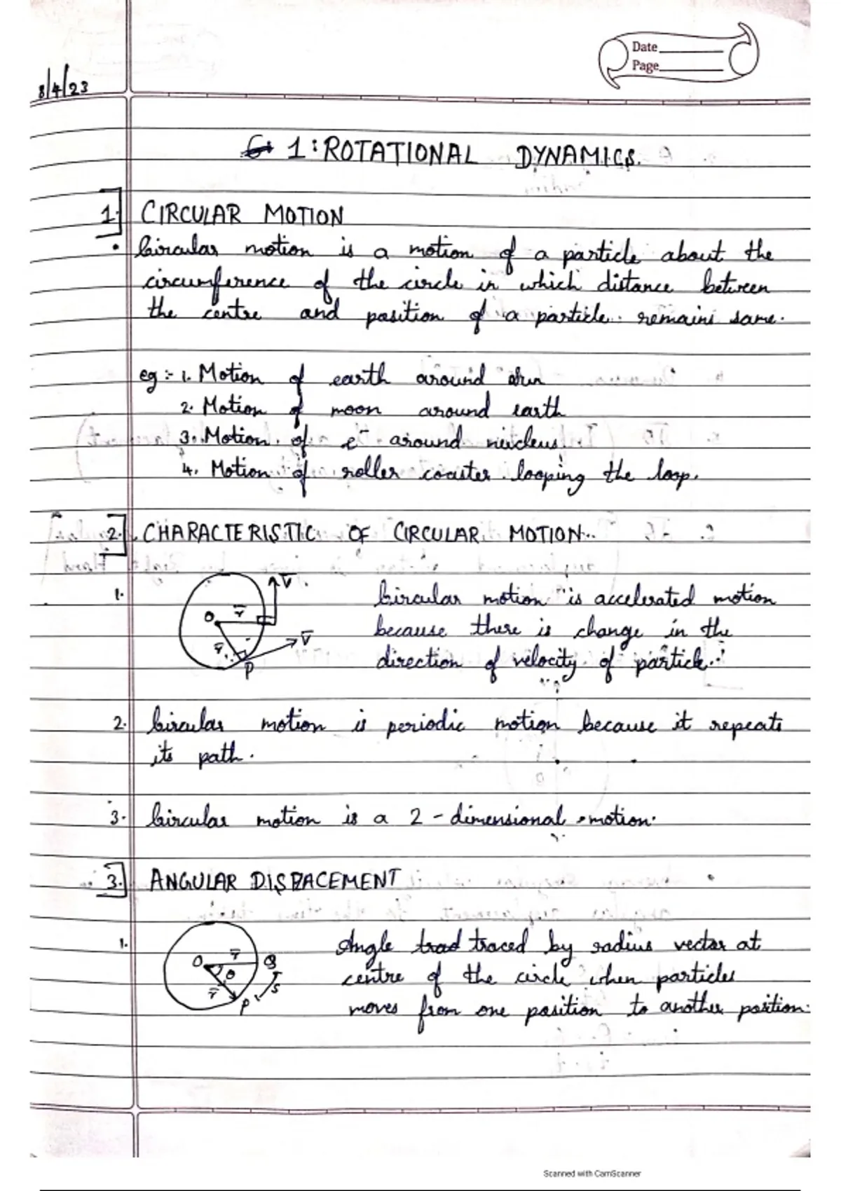 Class 12 Physics Notes – Rotational Dynamics (Handwritten, Easy to Understand)
