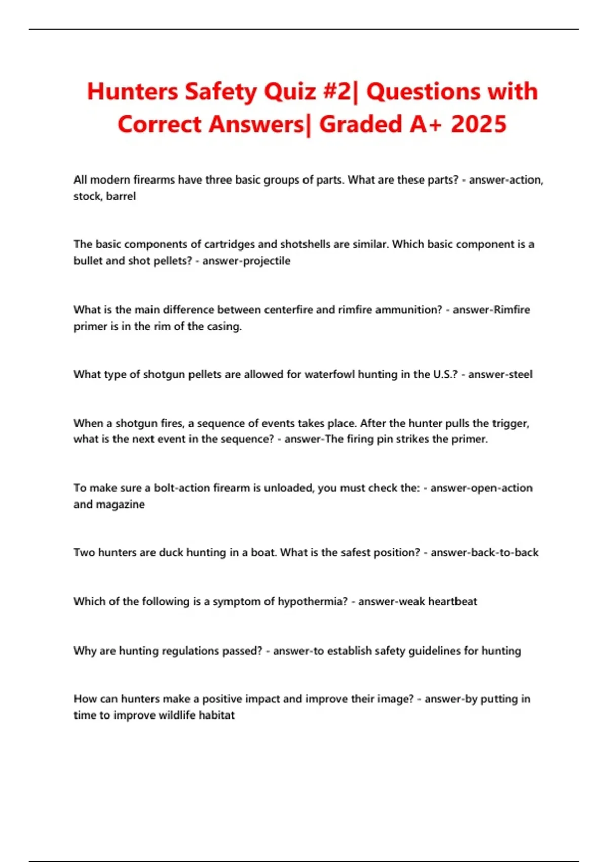 Hunters Safety Quiz #2| Questions with Correct Answers| Graded A+ 2025