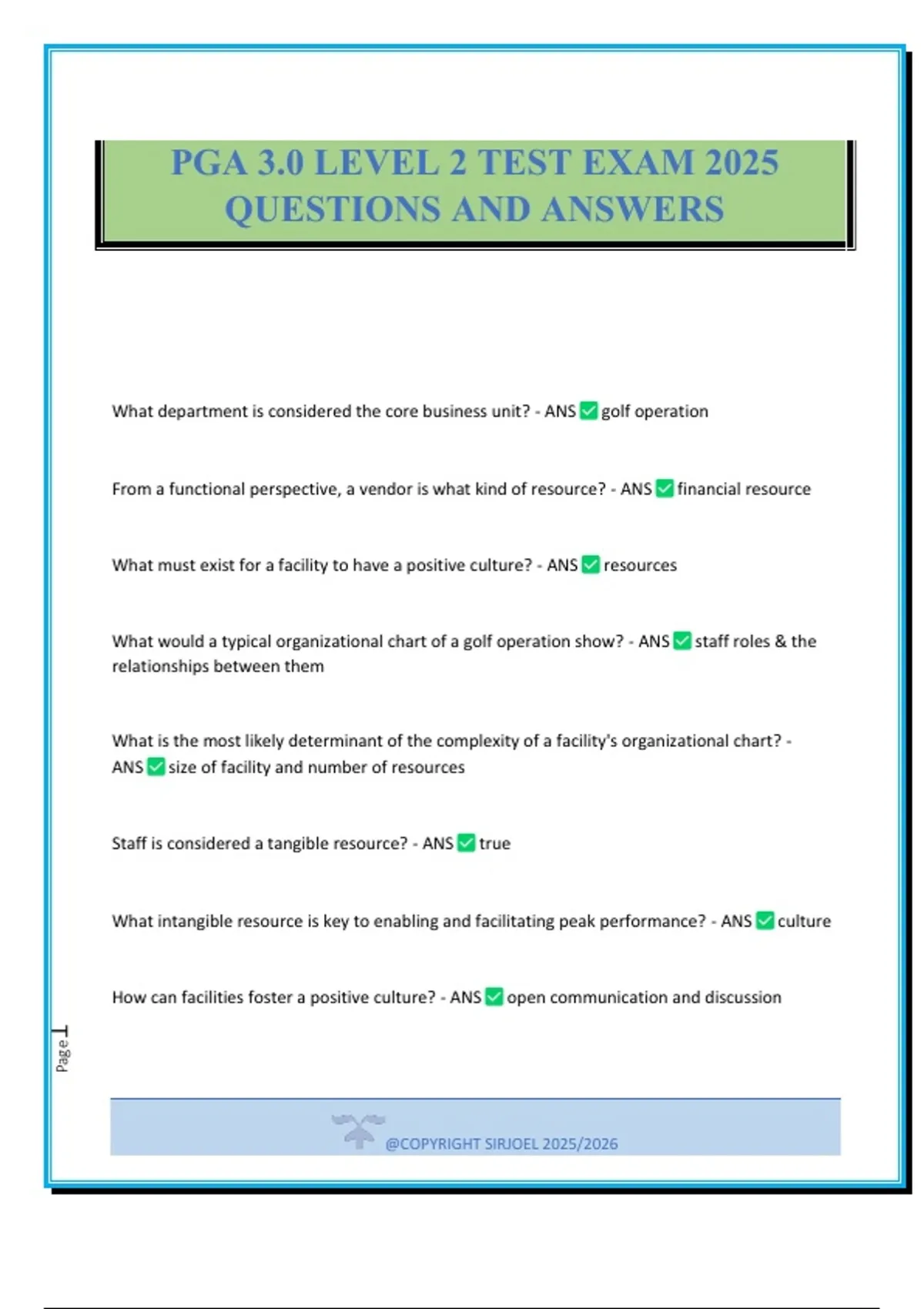 What would a typical organizational chart of a golf operation show? - ANS staff roles & the