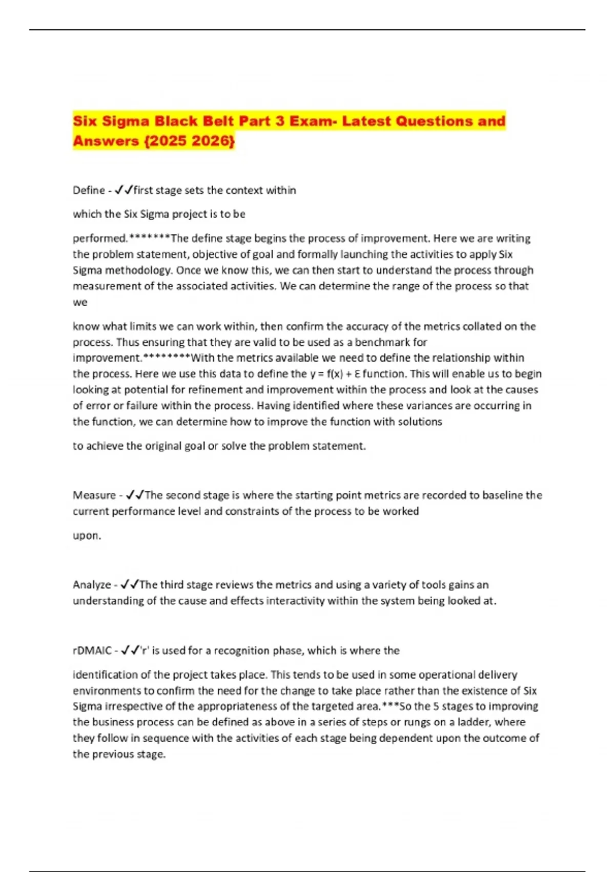 Six Sigma Black Belt Part 3 Exam- Latest Questions and Answers {}