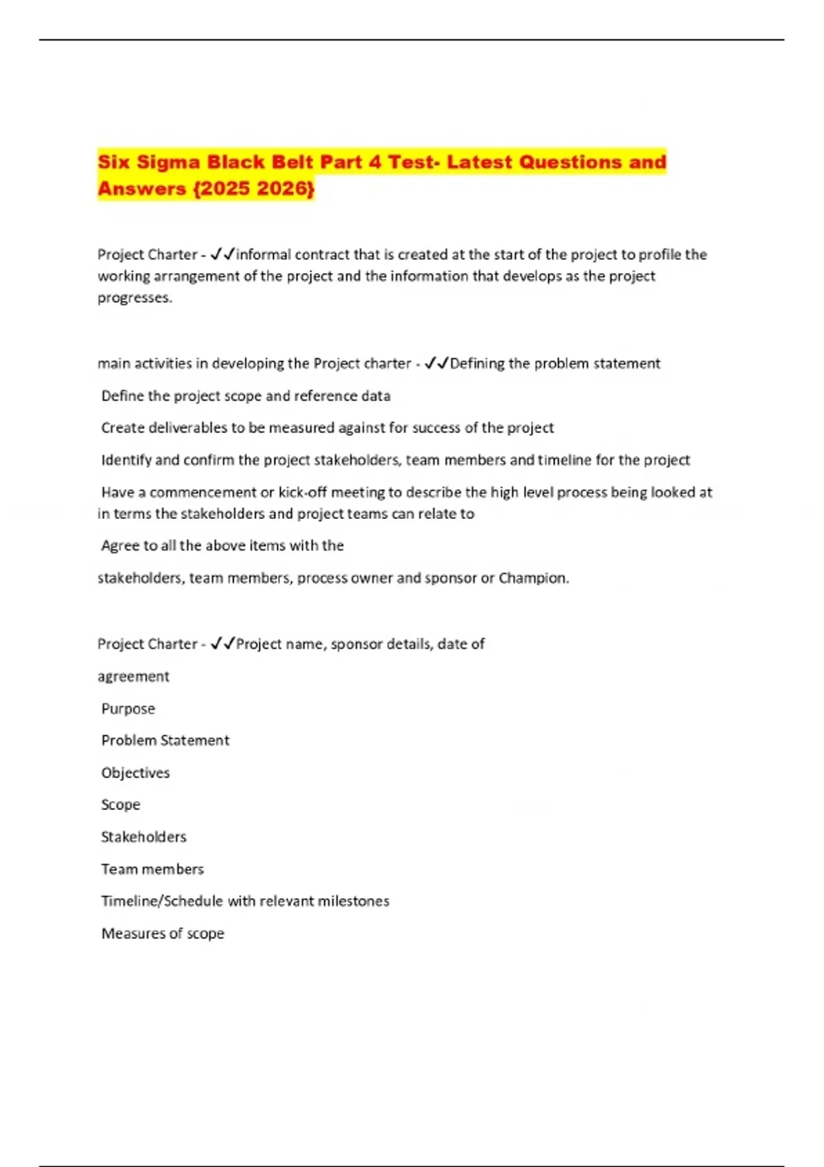 Six Sigma Black Belt Part 4 Test- Latest Questions and Answers {}