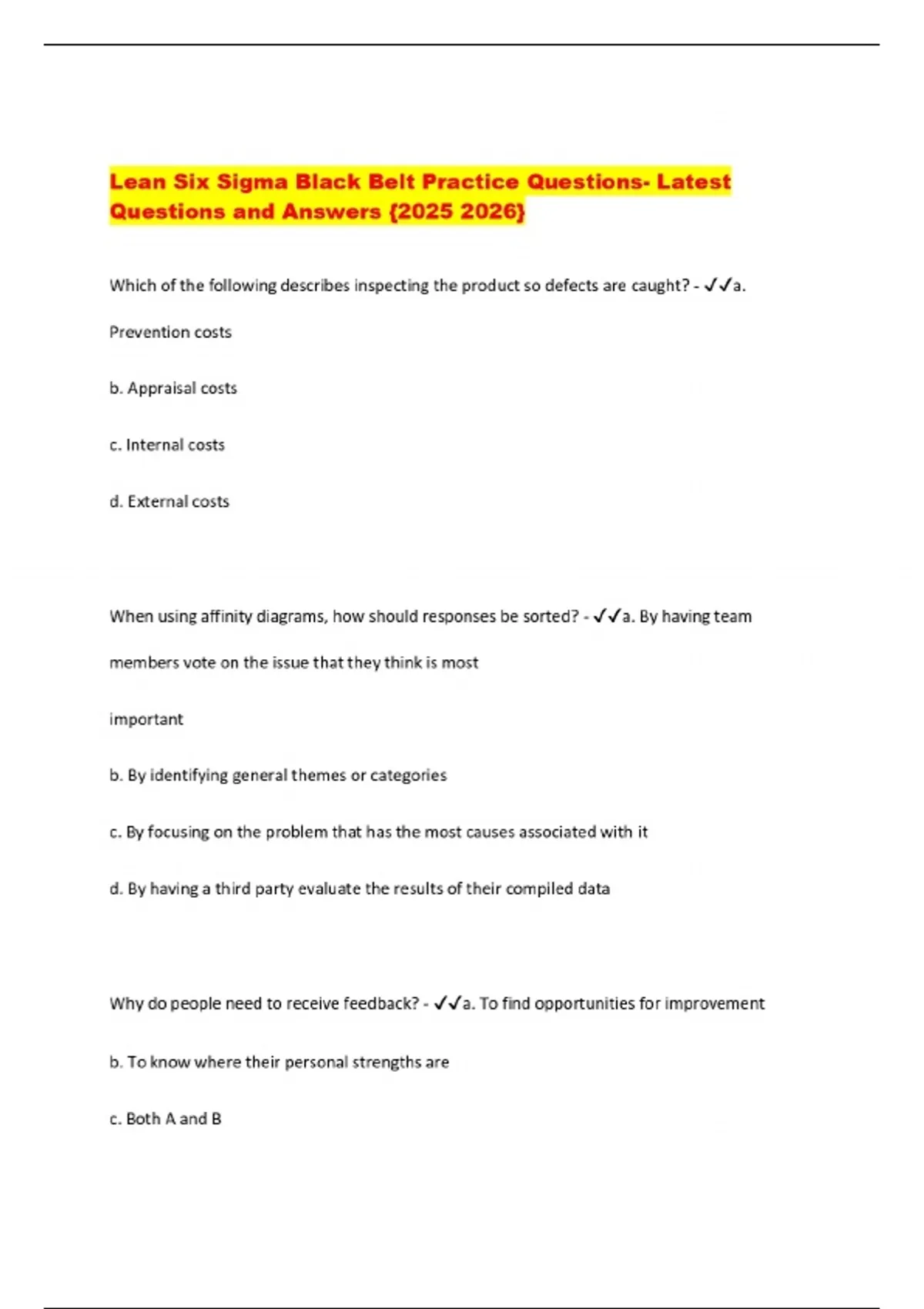 Lean Six Sigma Black Belt Practice Questions- Latest Questions and Answers {}