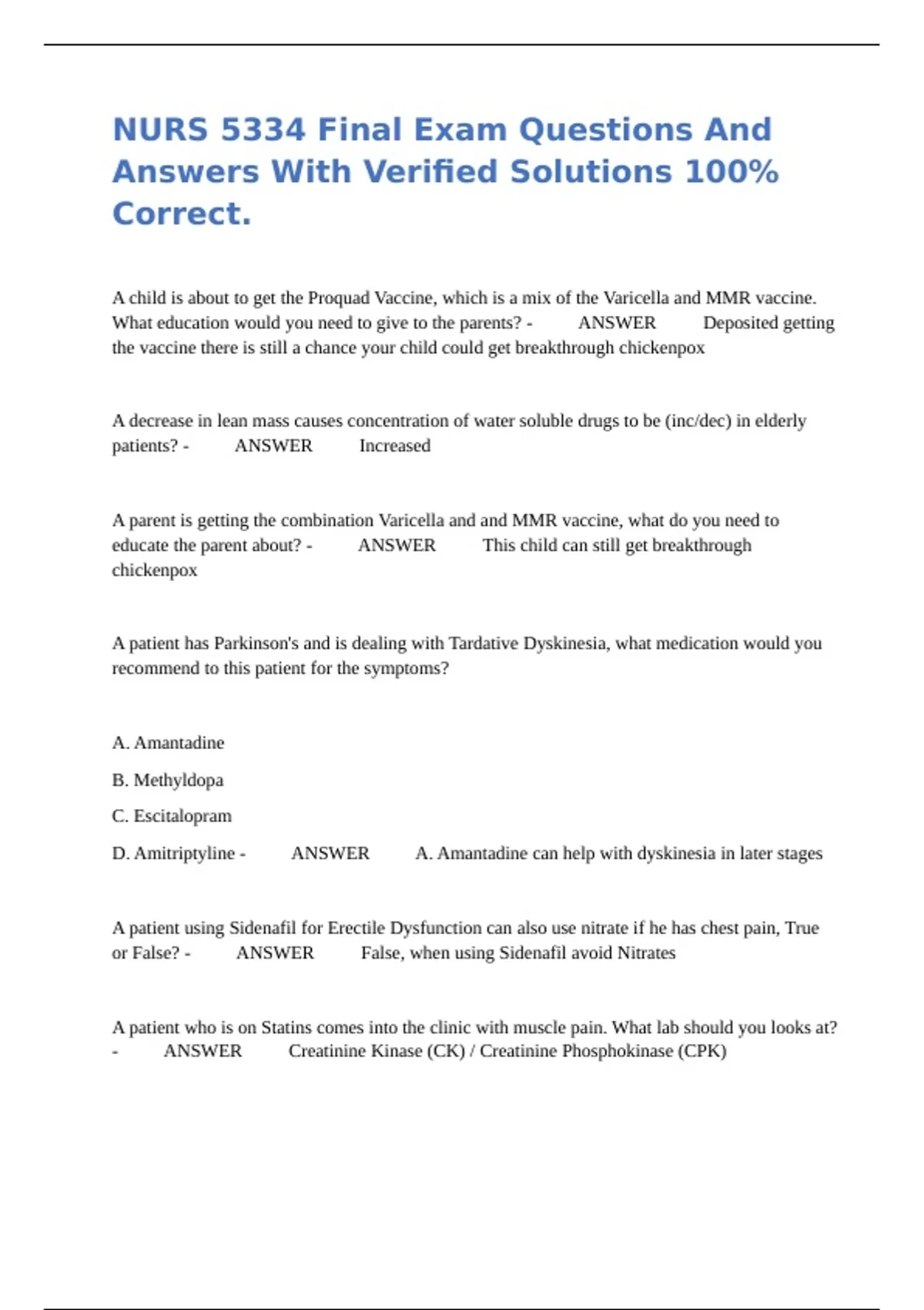 NURS 5334 Final Exam Questions And Answers With Verified Solutions 100% Correct.