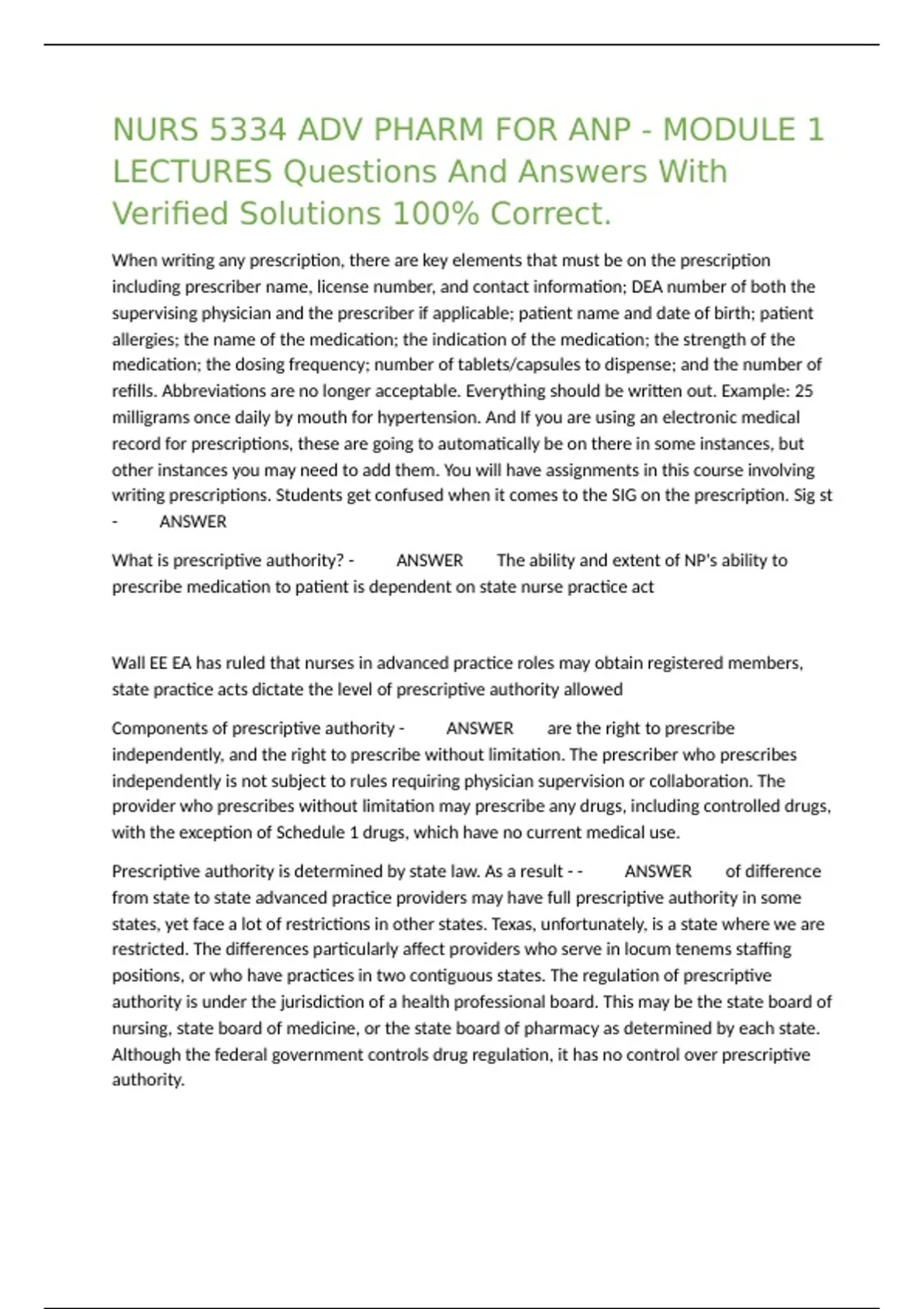 NURS 5334 ADV PHARM FOR ANP - MODULE 1 LECTURES Questions And Answers With Verified Solutions 100% Correct.