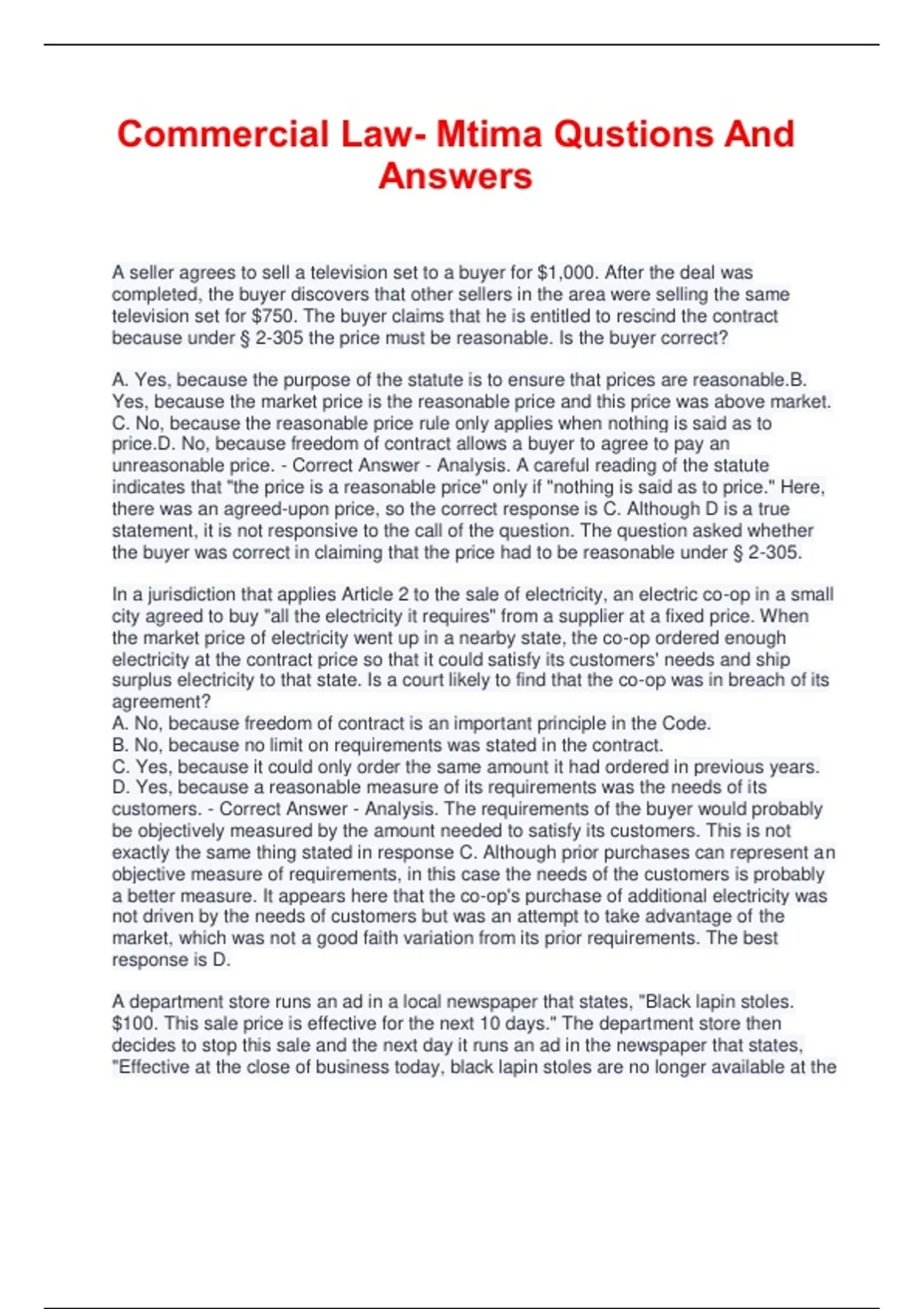 unreasonable price. - Correct Answer - Analysis. A careful reading of the statute